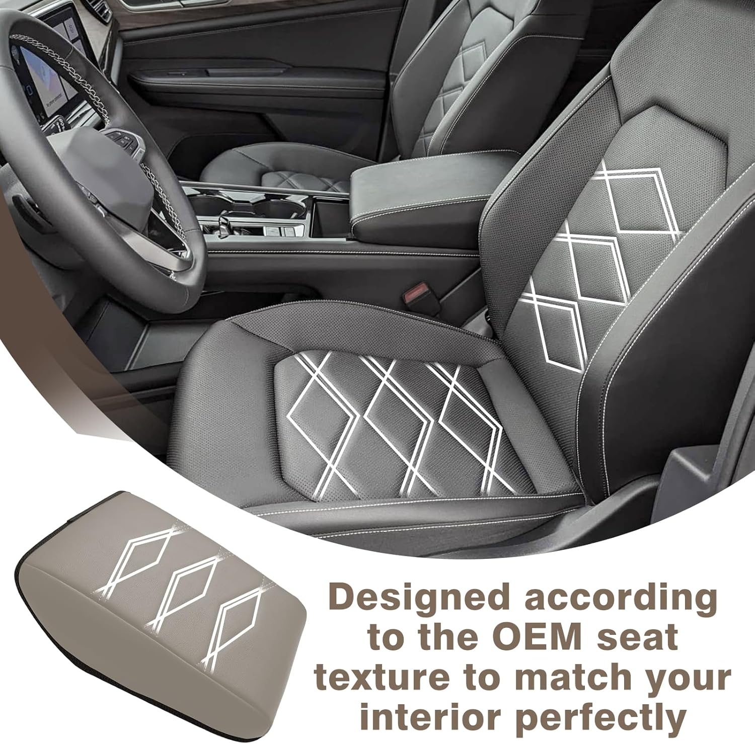 - Unique Design: Designed according to the OEM seat texture to make it match your interior perfectly and even better. Our armrest cover is crafted with high-quality Vegan Leather and an extra layer of foam, which is skin-friendly, breathable and soft.