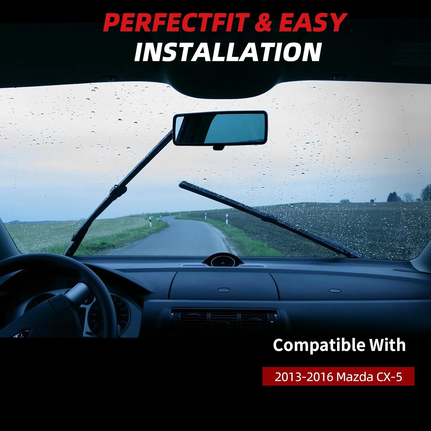 - [24"+18"+14" Perfect Fitment]: Replacement for Mazda CX-5 CX5 2013-2016. Our windshield wiper blades are engineered to provide a perfect fit for vehicle models, ensuring optimal performance and coverage