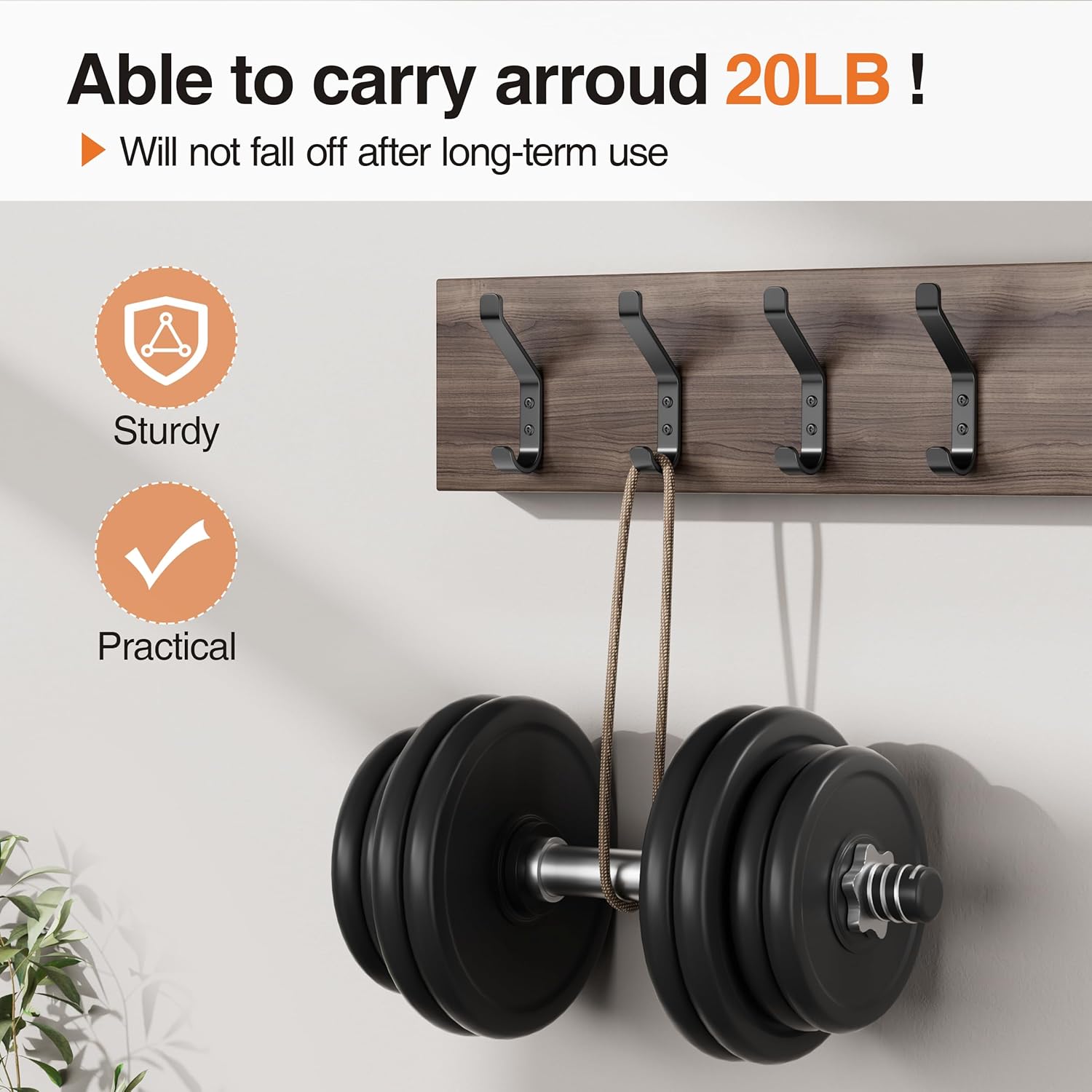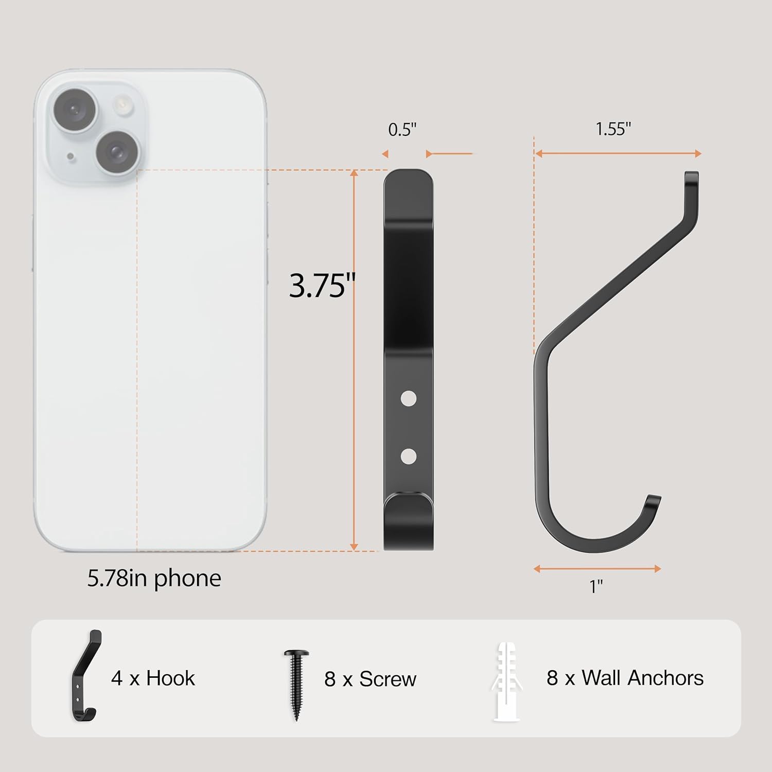 20-Pack Wall Hook for Hanging Coat - 20LB (Max), Stainless Hooks for Towel, Hat, Backpack, Clothes, Wall Mounted Coat Hanger for Closet, Metal, Black