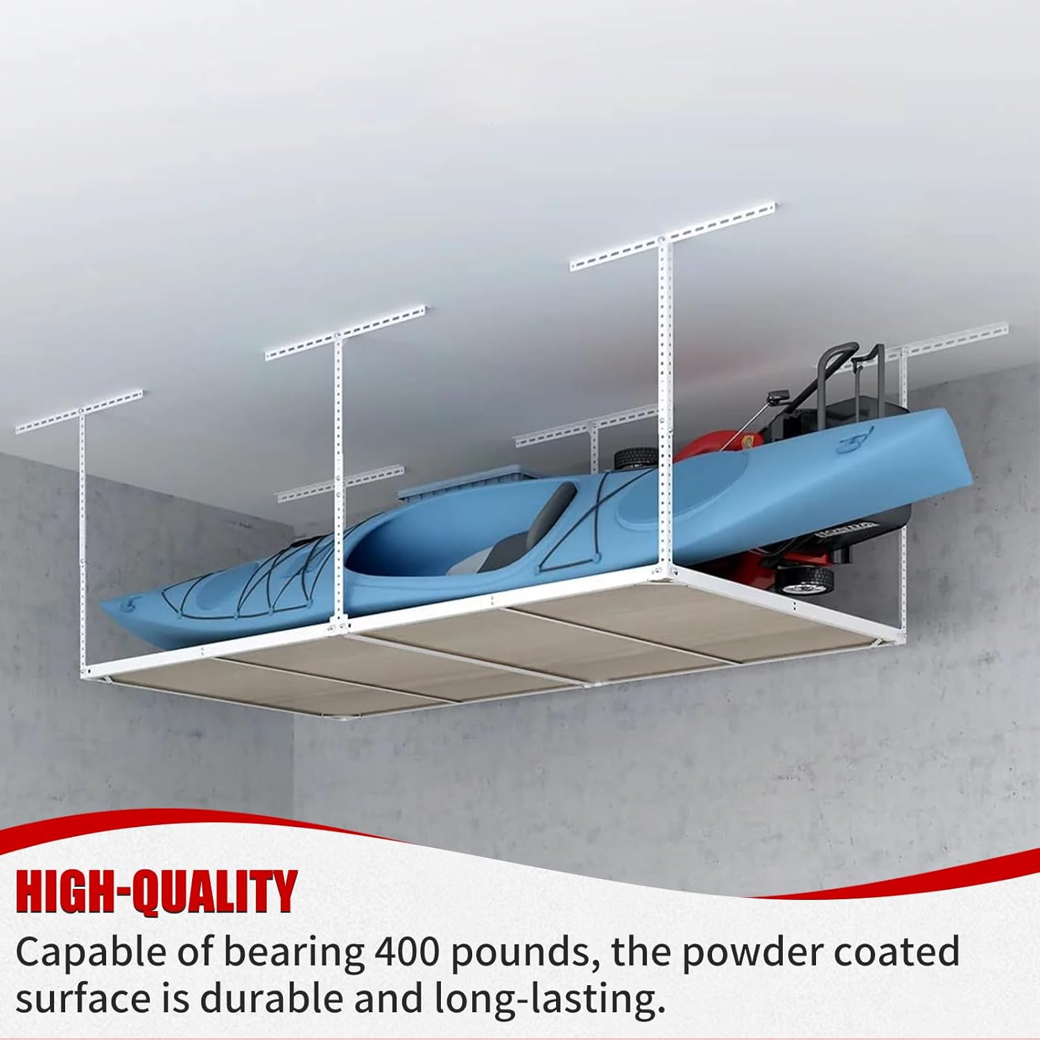- Organize Your Garage Efficiently :This overhead garage storage rack is the perfect solution for maximizing your garage storage capacity while keeping everything neatly organized and easily accessible.