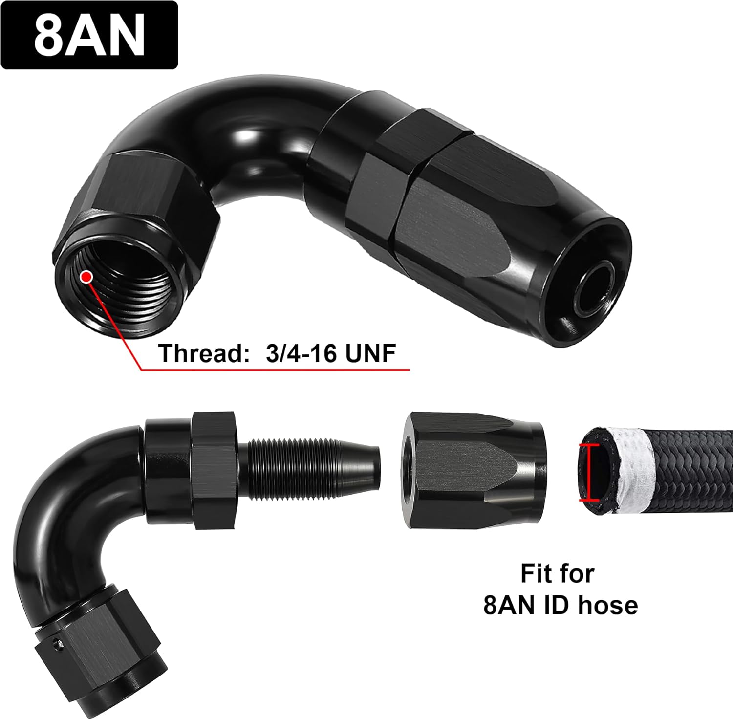 - Application:The AN8 hose end is only work with stainless braided and nylon braided hose .