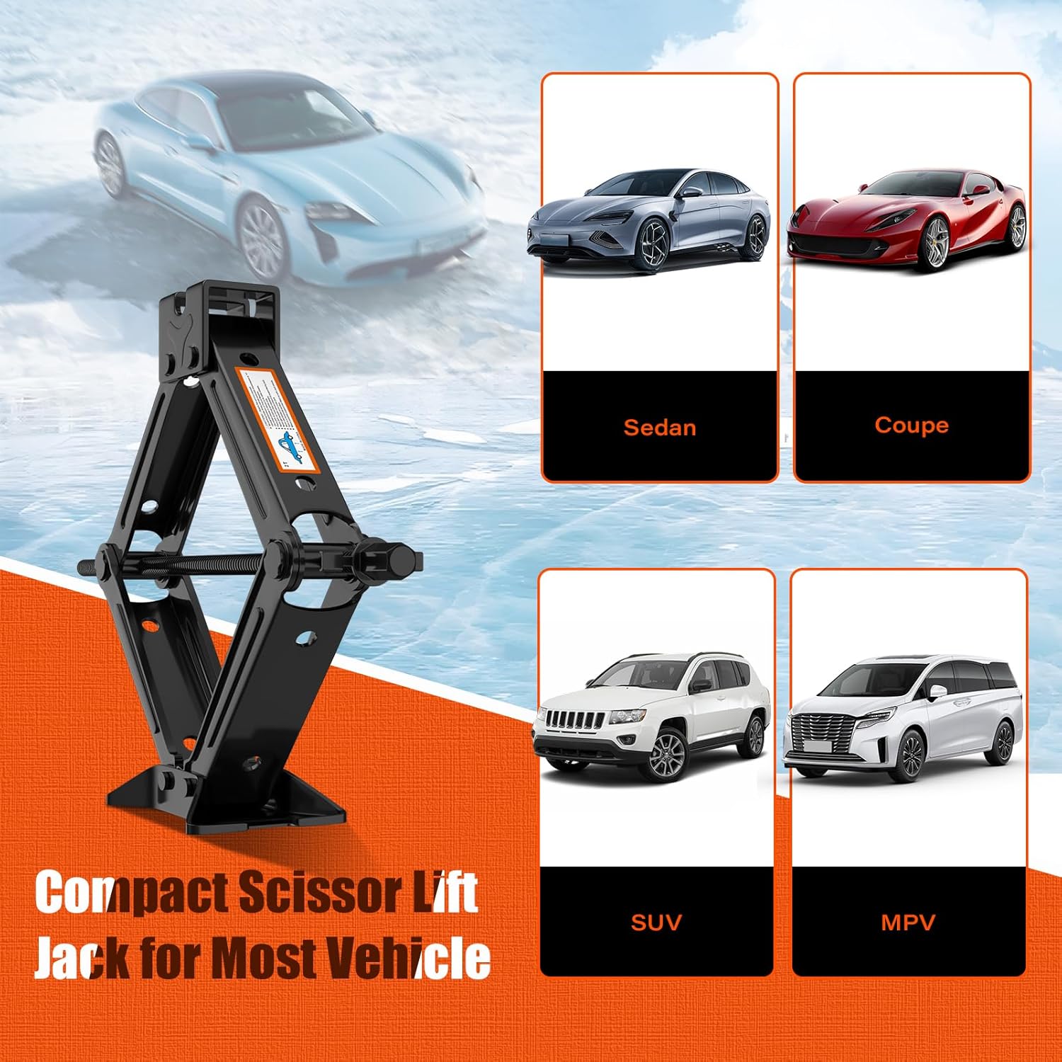 Scissor Jack for Car, 2 Ton (4409 lbs) Car Jack Kit for Sedan, SUV, MPV, Universal Tire Changing Kit with Lug Wrench