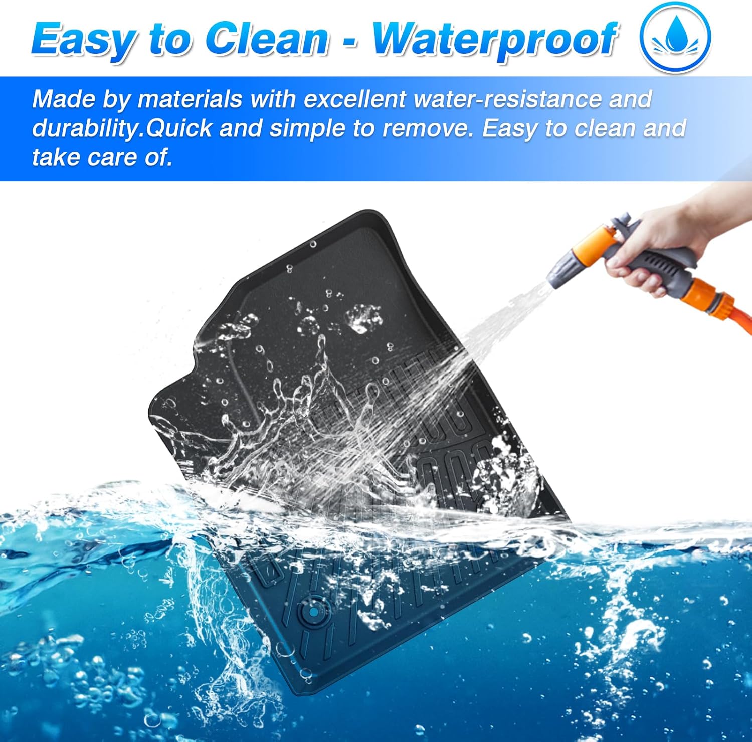 - All Weather Protect & Cleaning -- The Blazer EV floor mats are waterproof, and the groove design forms channels to collect water, mud, snow, debris, etc to avoid accidental skidding and stains to original car carpets. Easy to clean by rinsing it with water, and dry with a towel.
