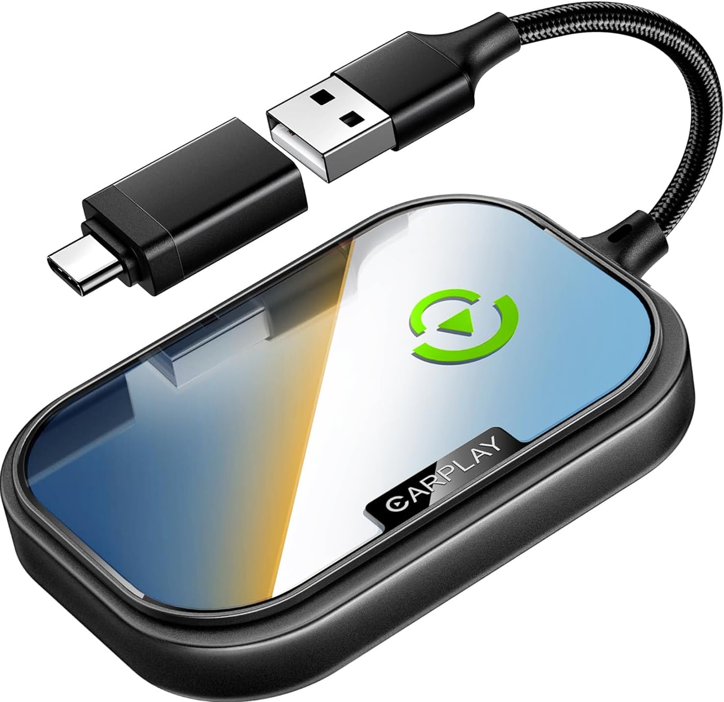 - Compact and Rugged Design: With its stylish, compact form, this CarPlay adapter blends seamlessly with your car's interior. Its lightweight, portable design means it won’t take up much space, while its Rugged shell and braided cable withstand daily use. Enhanced heat dissipation ensures longevity.
