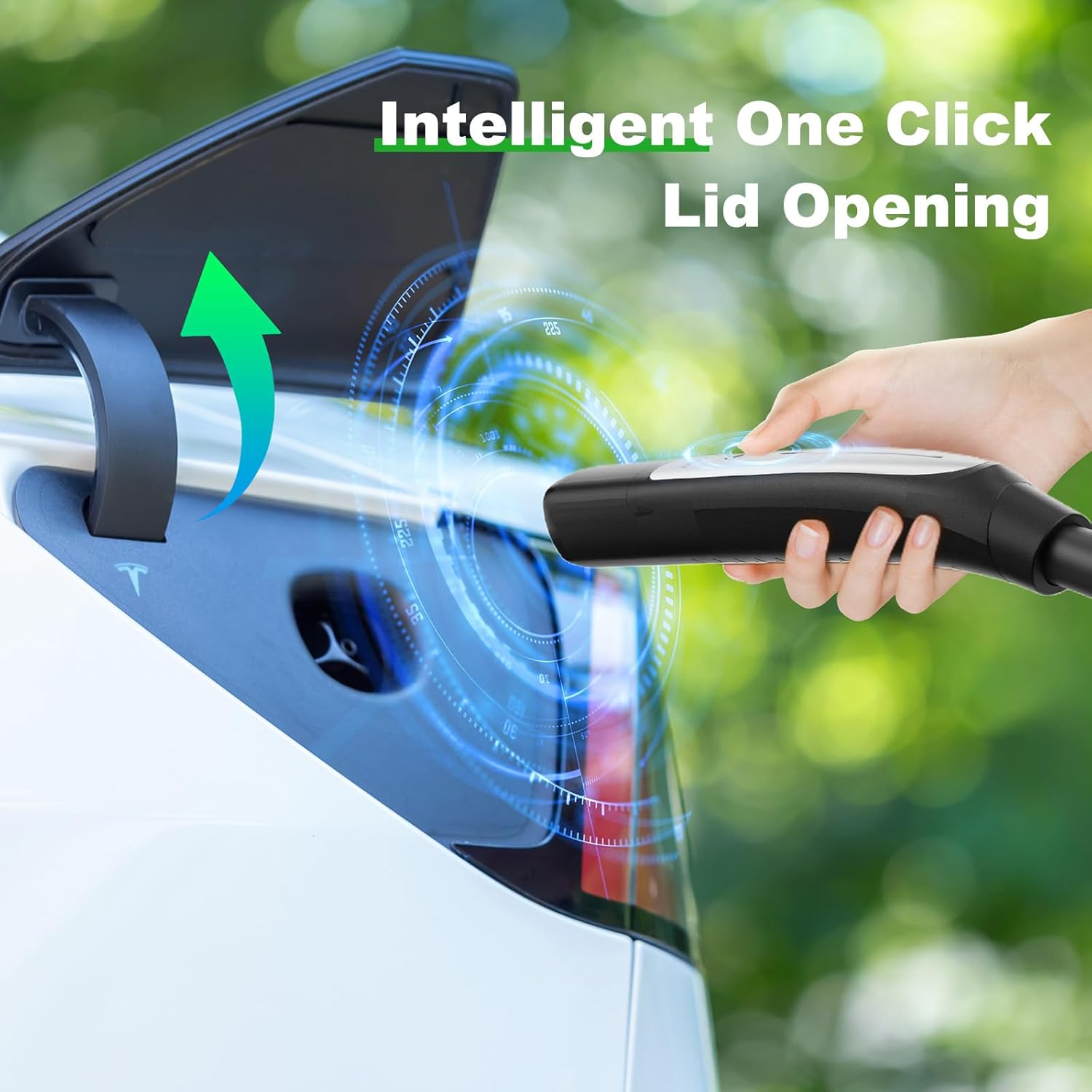 - Effortless Convenience: Our Tesla Charging Station offers unparalleled ease of use. Simply plug it in, press the button on the handle to open the charging port, and you're ready to power up your vehicle. It's as simple as 1-2-3, ensuring a hassle-free and lightning-fast charging experience!