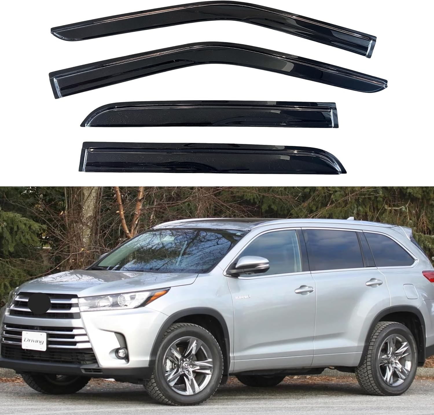 - 【Perfect Fit】KPY window visors rain guards vent deflectors compatible with Toyota Highlander 2014 2015 2016 2017 2018 2019 (Mugen Style)