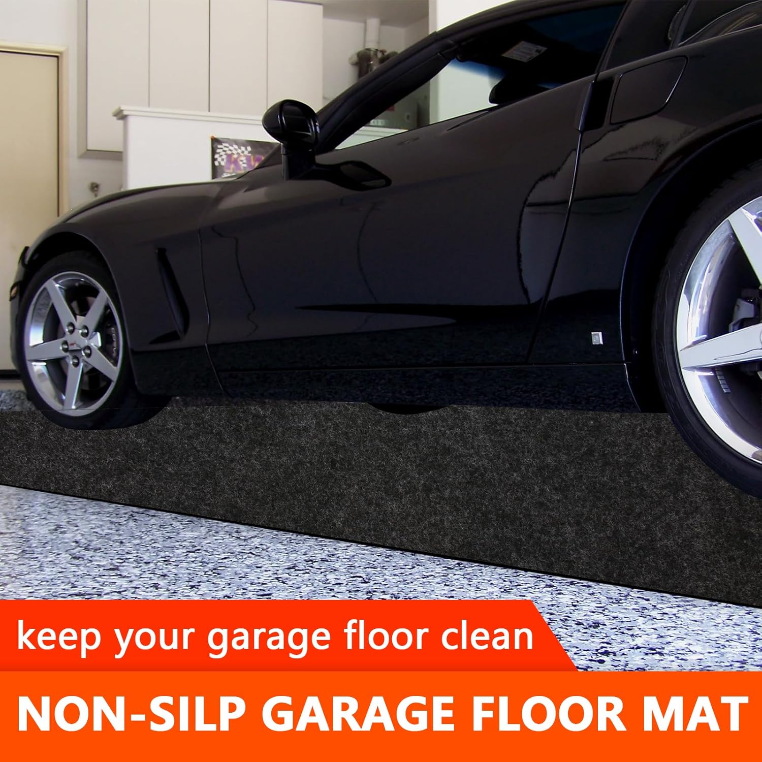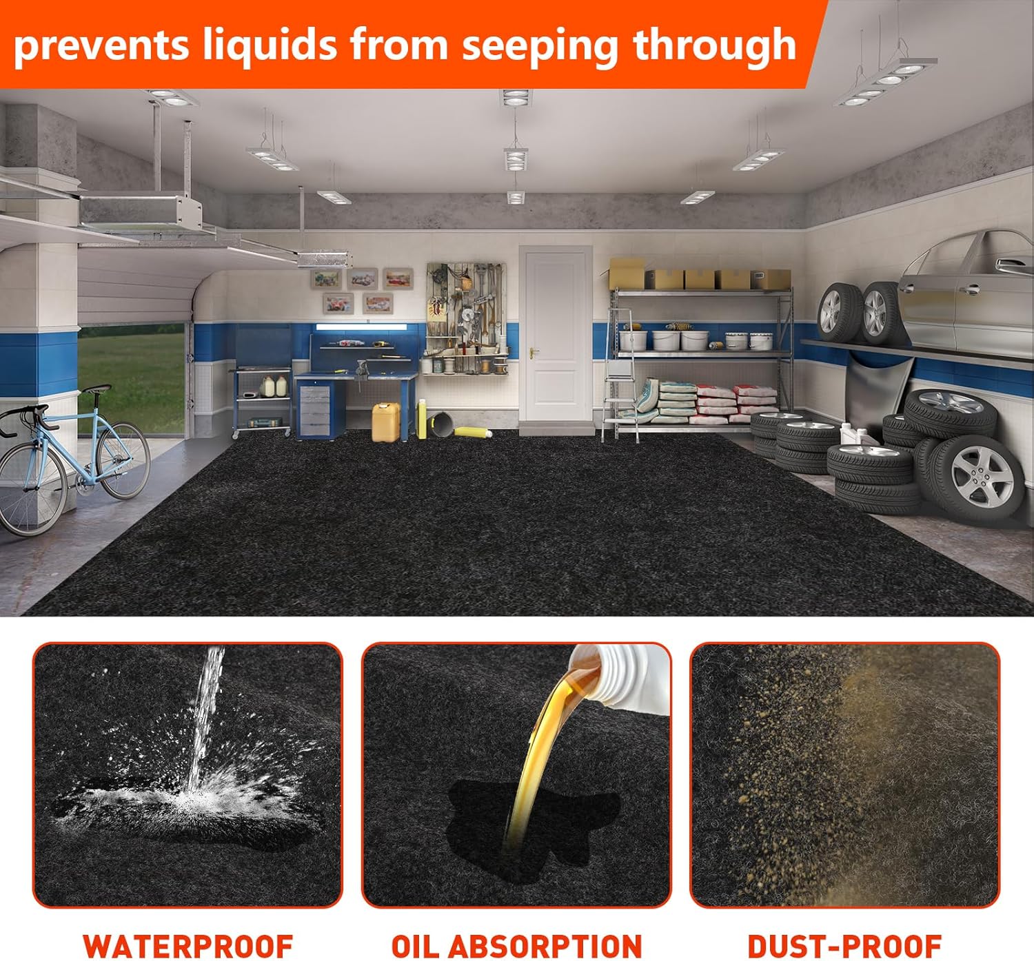Non-Slip Garage Floor Mat for Under Car, 7'4"x17' Extra Large Absorbent Oil Garage Parking Mat, Waterproof Backing, Reusable, Washable, Protects Floor from Snow, Rain and Mud for Cars