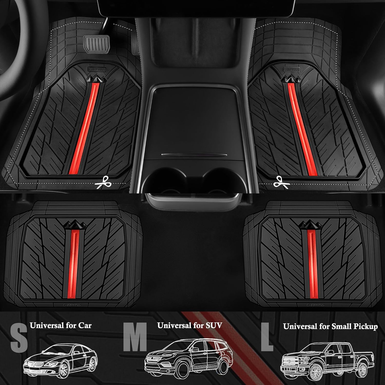 CAR PASS Metal Medium Rubber Floor Mats for car Heavy Duty car mats All Weather, Universal Trim to Fit for Truck SUV Vehicle Automotive Floor Mats, Waterproof car mats 4 Piece (Red Black)