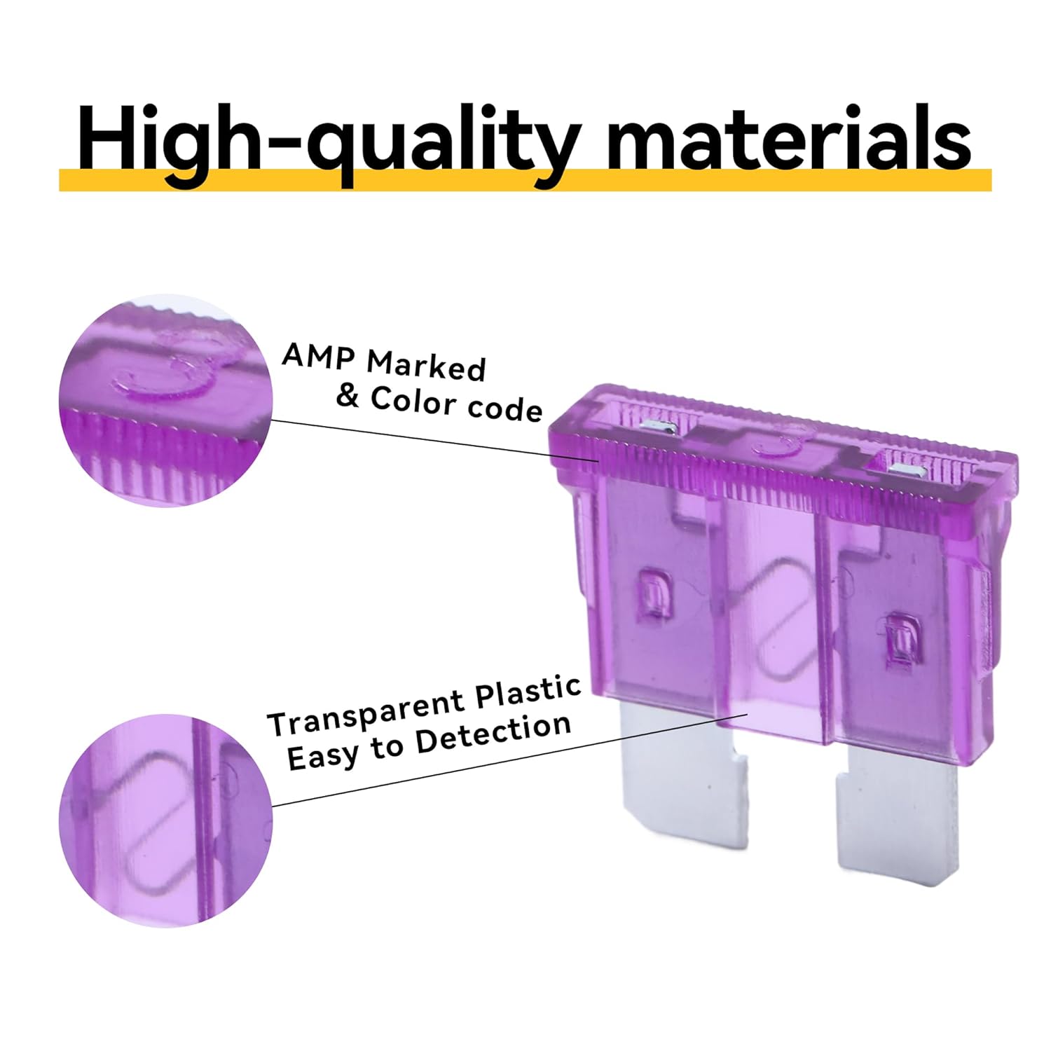 - CONVENIENT DETECTION - The plug-in blade fuses are made from transparent PES with zinc alloy inserts and transparent housings for viewing the fuse link status and quick detection of a blown fuse.