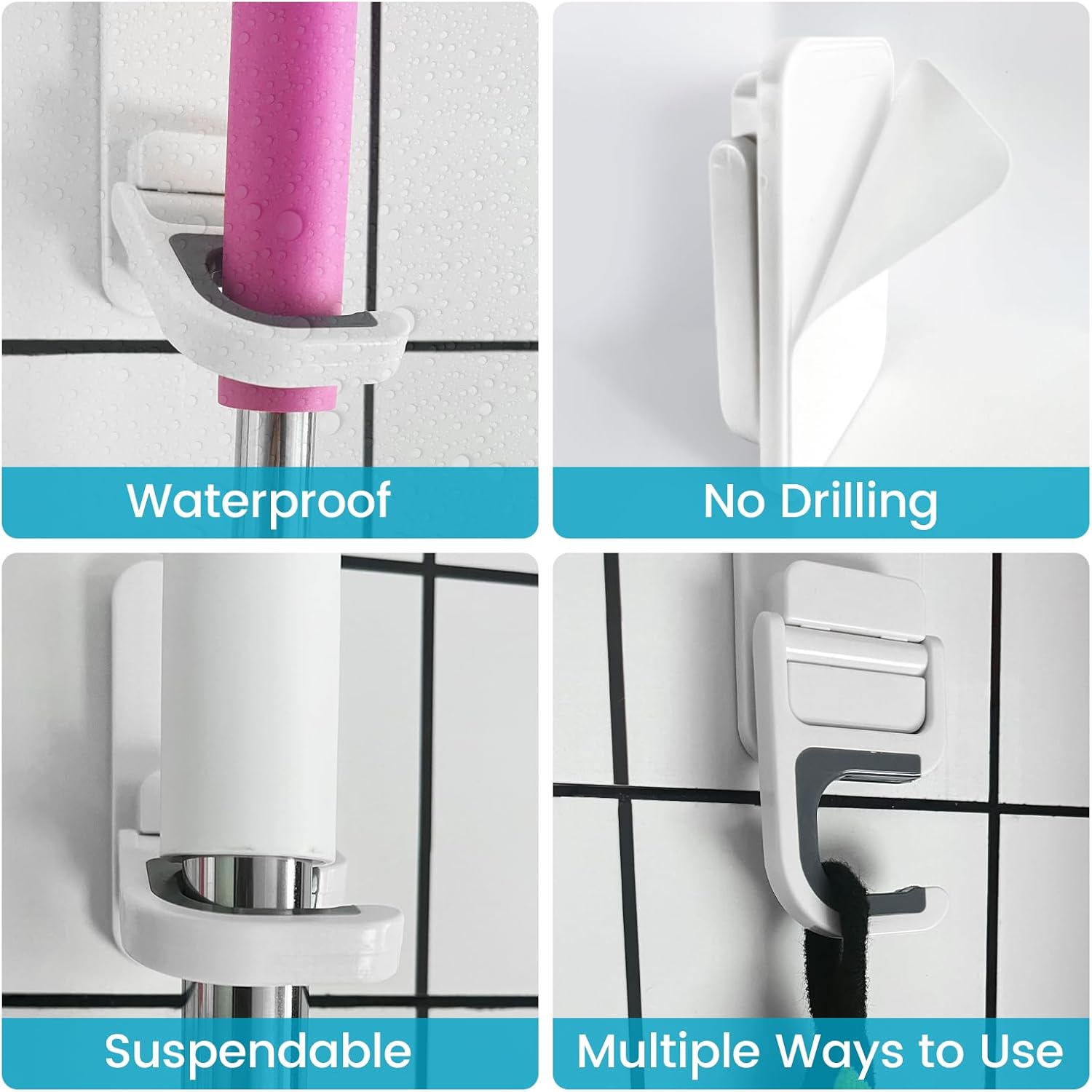 Broom Holder Wall Mount, 2 Pack Broom and Mop Organizer Wall Hanging Self Adhesive, No Drilling, Anti-Slip Broom and Mop Hanger Wall Mount Cleaning Ideal for Bathroom, Kitchen, Garden, Garage