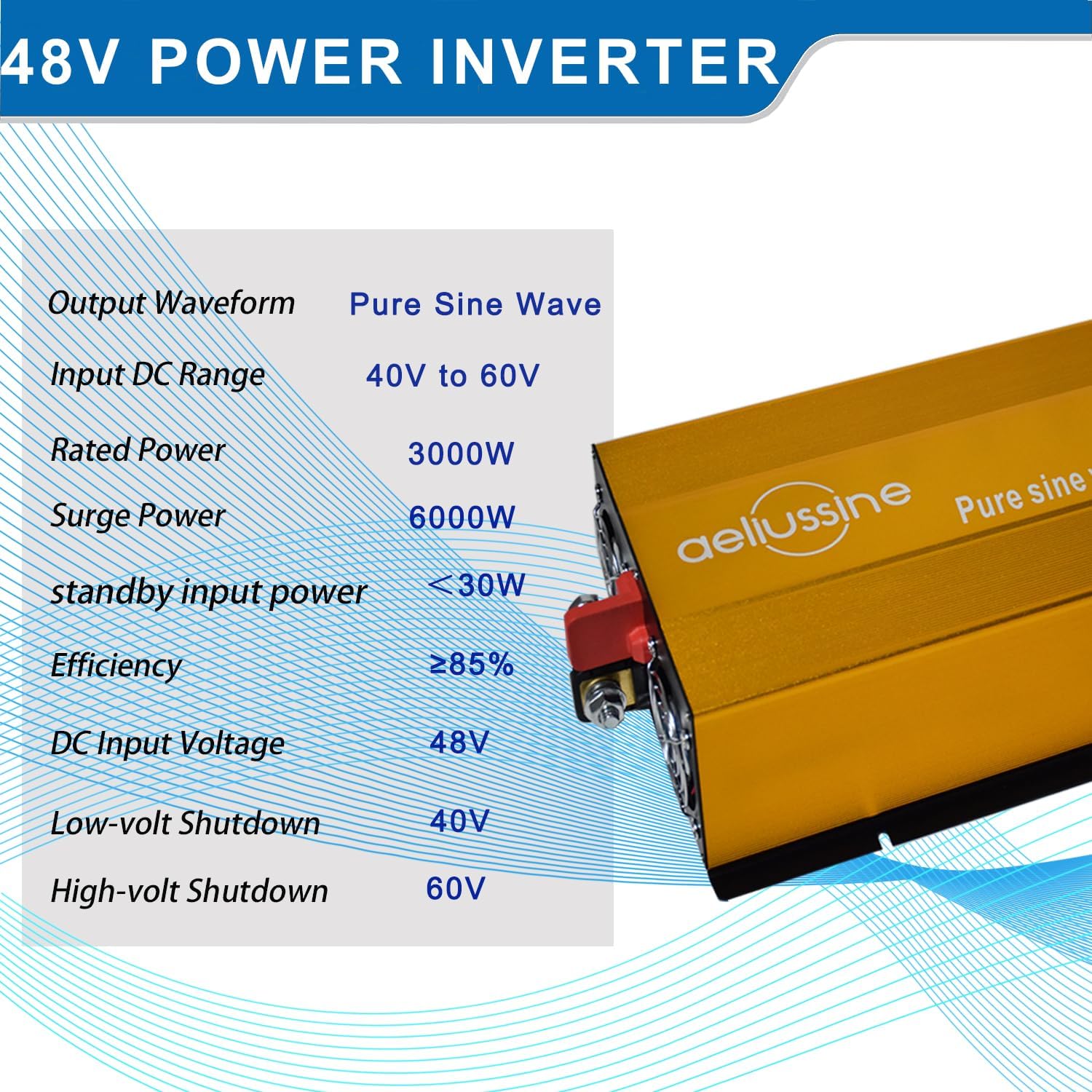 3000W Pure Sine Wave Inverter-48V DC to 110V AC Power Converter with 2 AC Outlets, 48 Volt Power Inverter for Truck, Rv, Camping, Home, Emergency Power