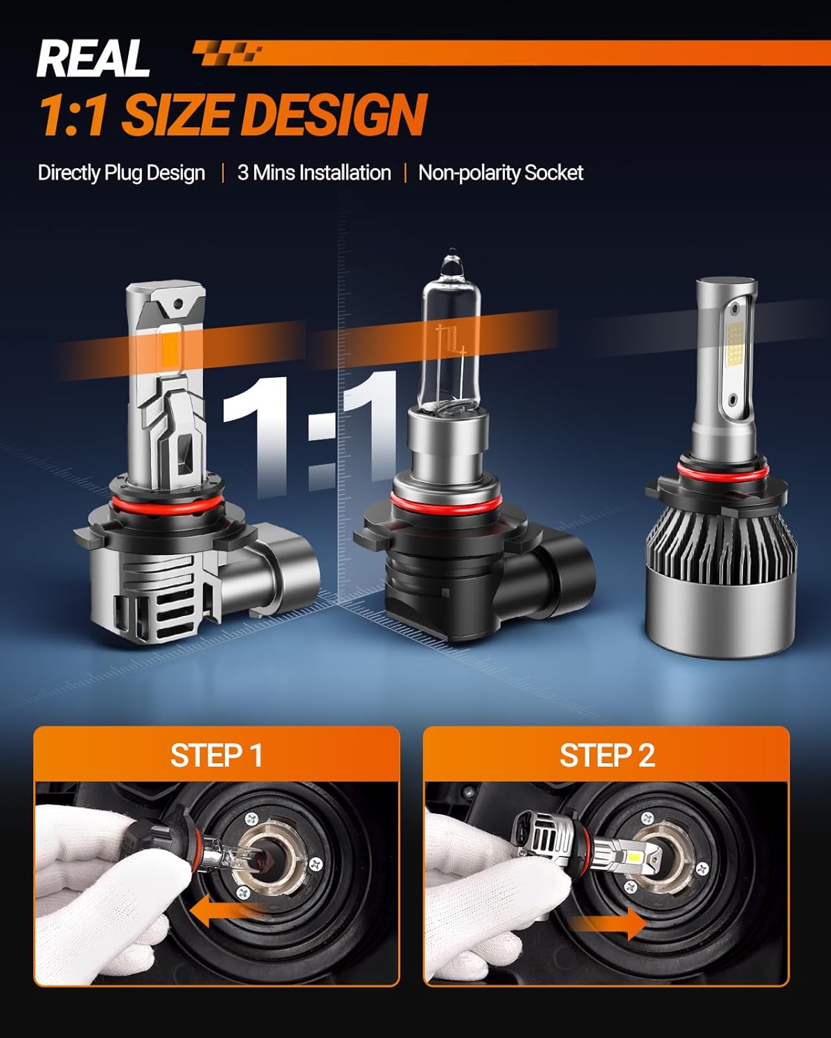 - ă1:1 Mini Size & 3 MINS Plug and PlayăSealight 9006 led bulbs feature a near-identical 1:1 mini design as original bulbs, requiring no external drivers or wires for a true plug-and-play experience.