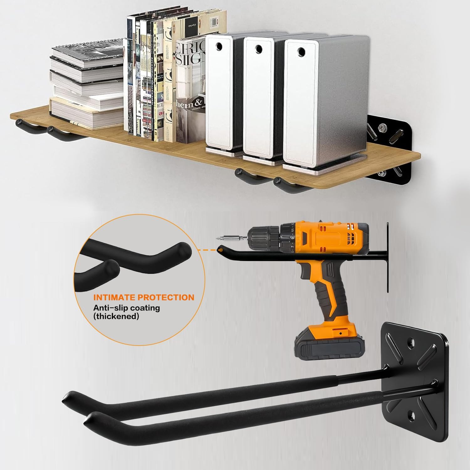 - Premium Quality Material:GUDEMAY garage storage hooks is made of premium solid and prominent steel, while the coating is made of sturdy PVC. Sturdy design provides superior load-bearing capacity, which allows garage hooks to hold various tools firmly, including power tools, garden tools, shovel, weed eater, broom, ladder, bicycle, ropes, hoses, etc