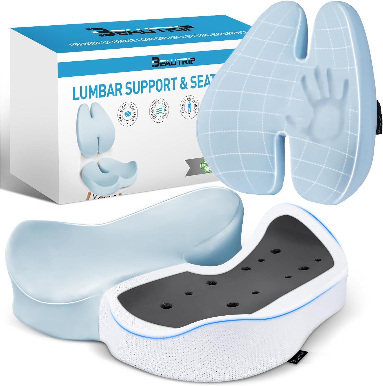 BEAUTRIP Seat Cushion & Lumbar Support Pillow for Office Chair, Car & Wheelchair - Ergonomic Coccyx Cushion for Tailbone, Sciatica & Back Pain Relief - Extra-Dense Charcoal Memory Foam Chair Cushions