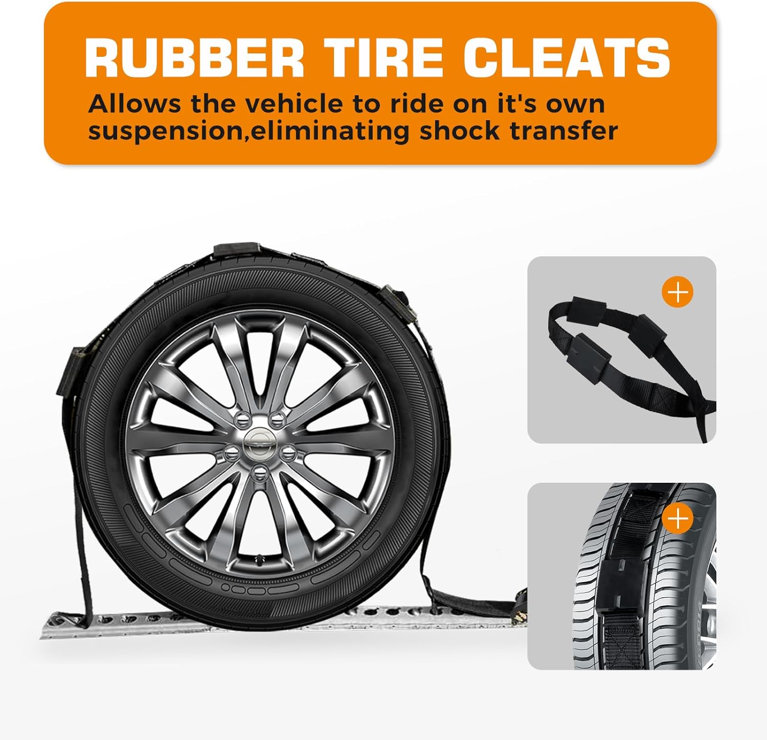 - SAFE AND COMPLIANT: Tire straps for a car trailer safe working load of 3,333 lbs. 10,000lb break strength safe working load is stamped on the warning tag of each tire tie down straps for easy inspection car hauler straps meet specifications