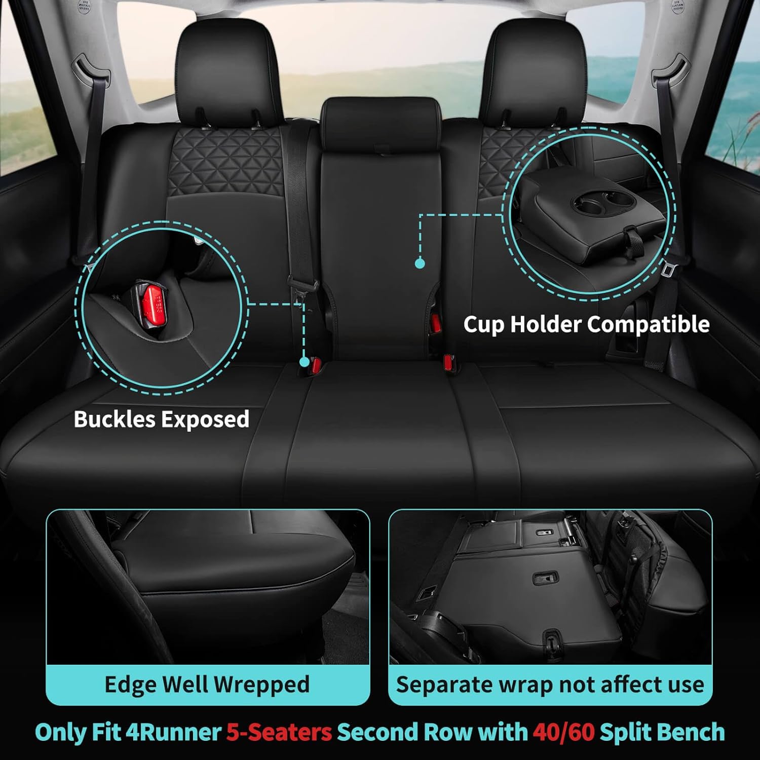 - Compatible with 7 Seats & 3 Rows - Car seat covers are tailored to fit 7-seat and 3-row versions, with a 40/60 split for 2nd row. Fit for 7-seat 4Runner models from 2011 to 2024, and are not compatible with the 5-seater and 2-row versions