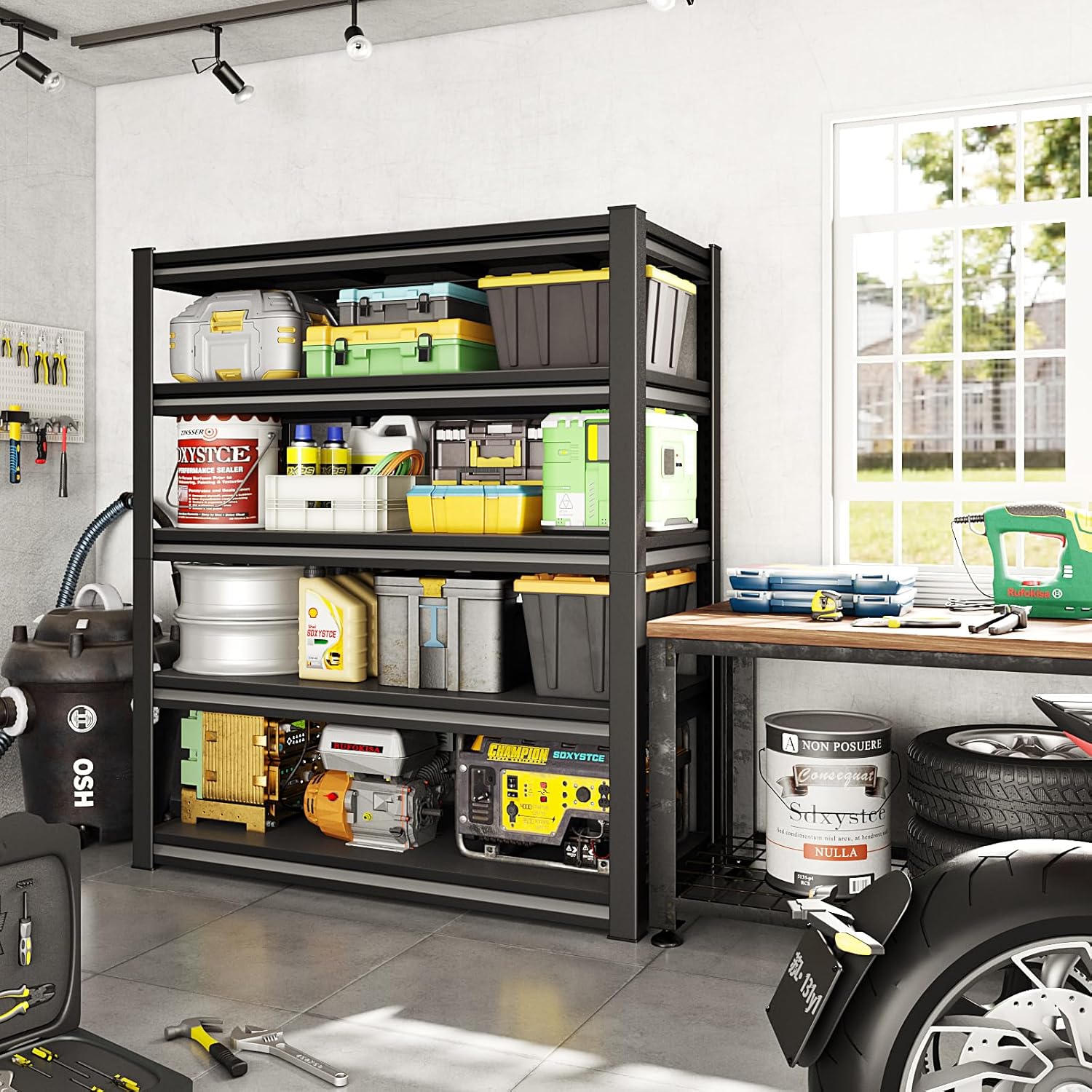 48" W Garage Shelving Heavy Duty,3000LBS Loads Adjustable Garage Storage Shelves,5-Tier Metal Storage Racks and Shelving Units, Utility Rack Shelves,48”W x 24”D x 78”H,Black