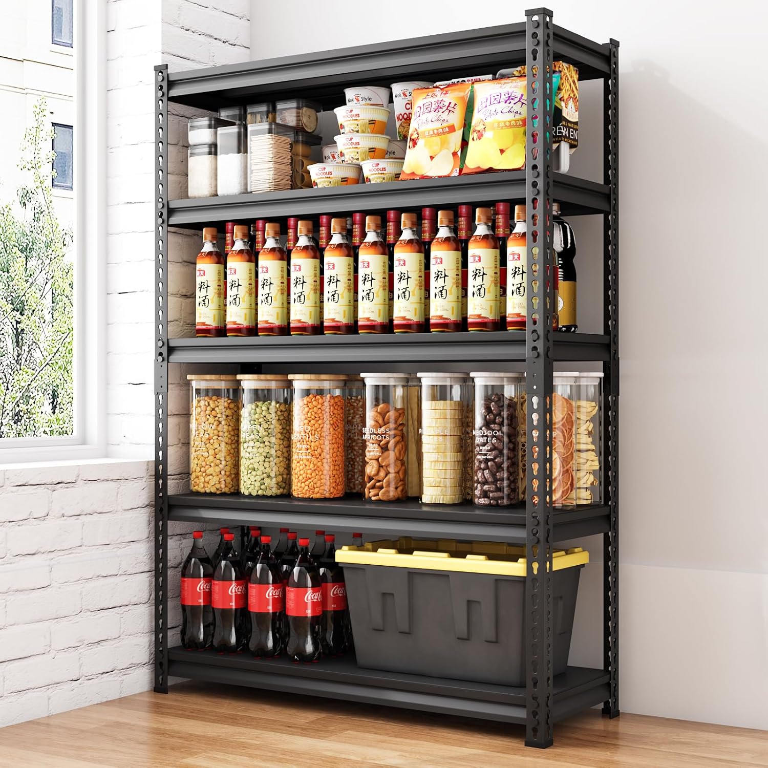 - 【Large Size Storage Shelves】Rufokisa 5-tier metal shelving unit with size of 48"W*24"D*78"H,which provides sufficient storage space and holds tons of items. It will works perfect for your garages, warehouses, basements,kitchens, pantry, basement etc .