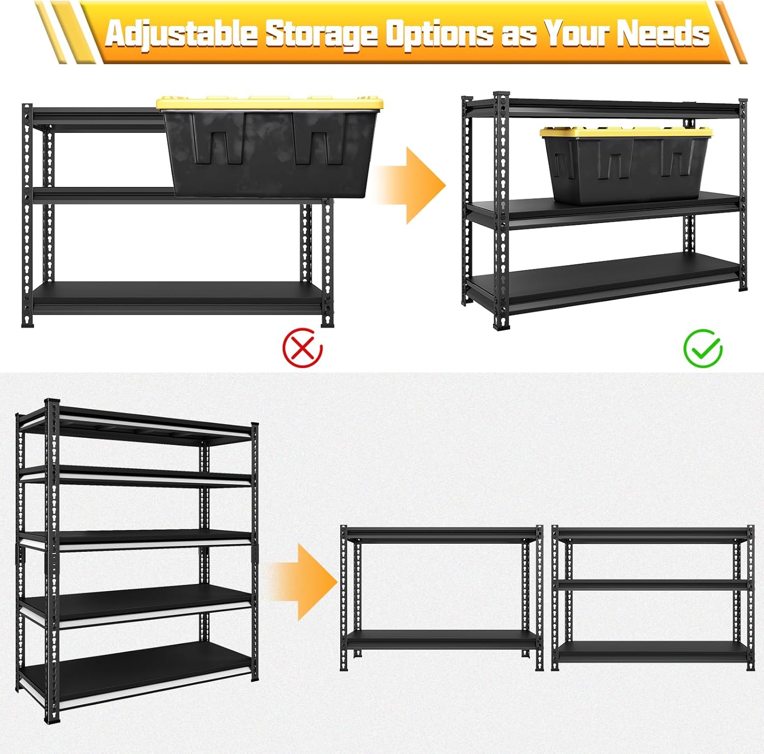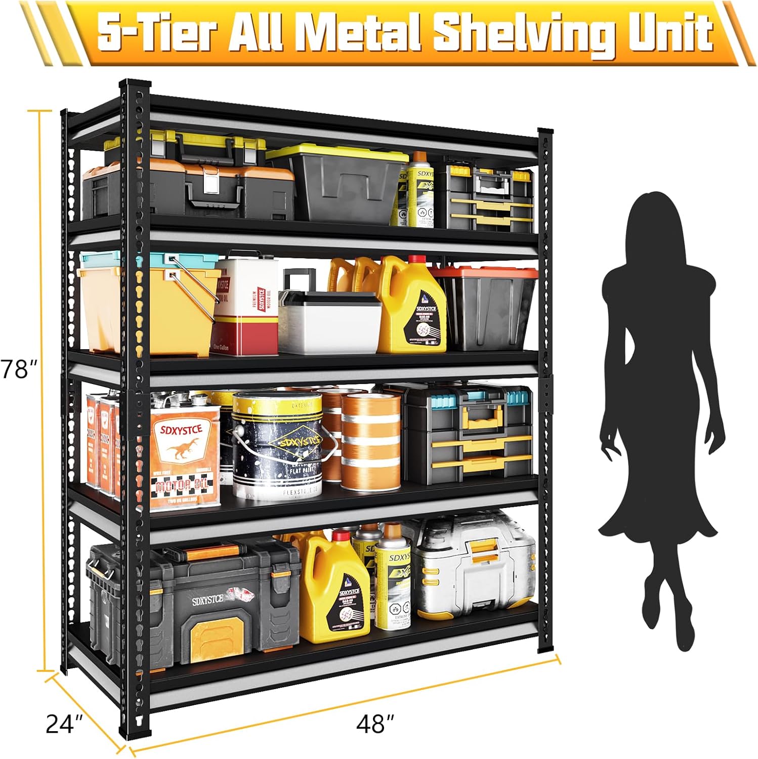 48" W Garage Shelving Heavy Duty, 3000LBS Loads Adjustable Garage Storage Shelves, 5-Tier Metal Shelving Units and Storage Racks, Industrial Utility Shelf,48" Wx24 Dx78 H, Black