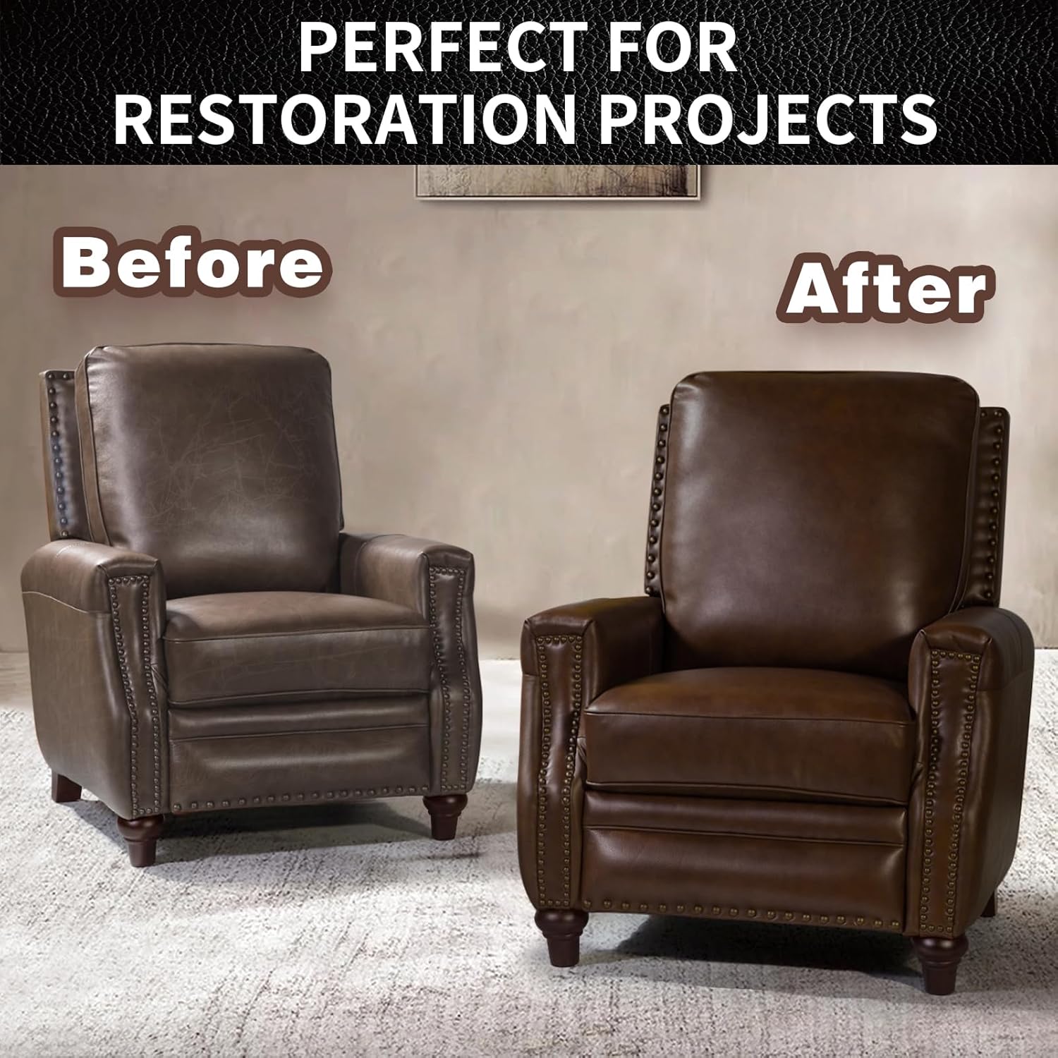 - Easily Renew Old Dull Leather-This Leather Recoloring Balm make fast, easy DIY repairs. A single application eliminates scratches, fading, and general wear and peeling. Flexible, easy to apply. Dries quickly, waterproof and will not rub off! And has no unpleasant odor