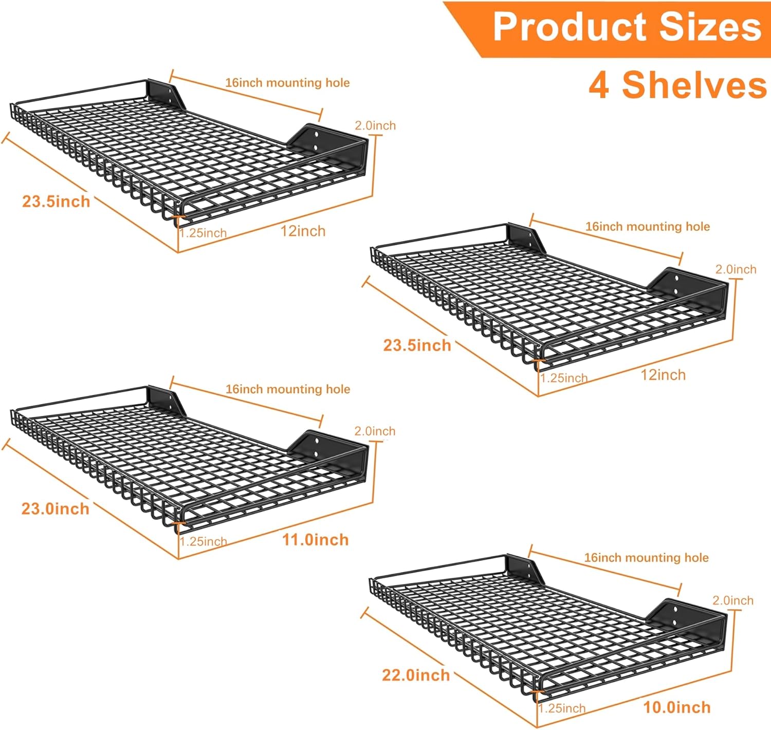 - Well Constructed: Garage wall mount shelving is made of high quality steel with powder coated finish and well constructed. Holds up to 65lbs/shelf