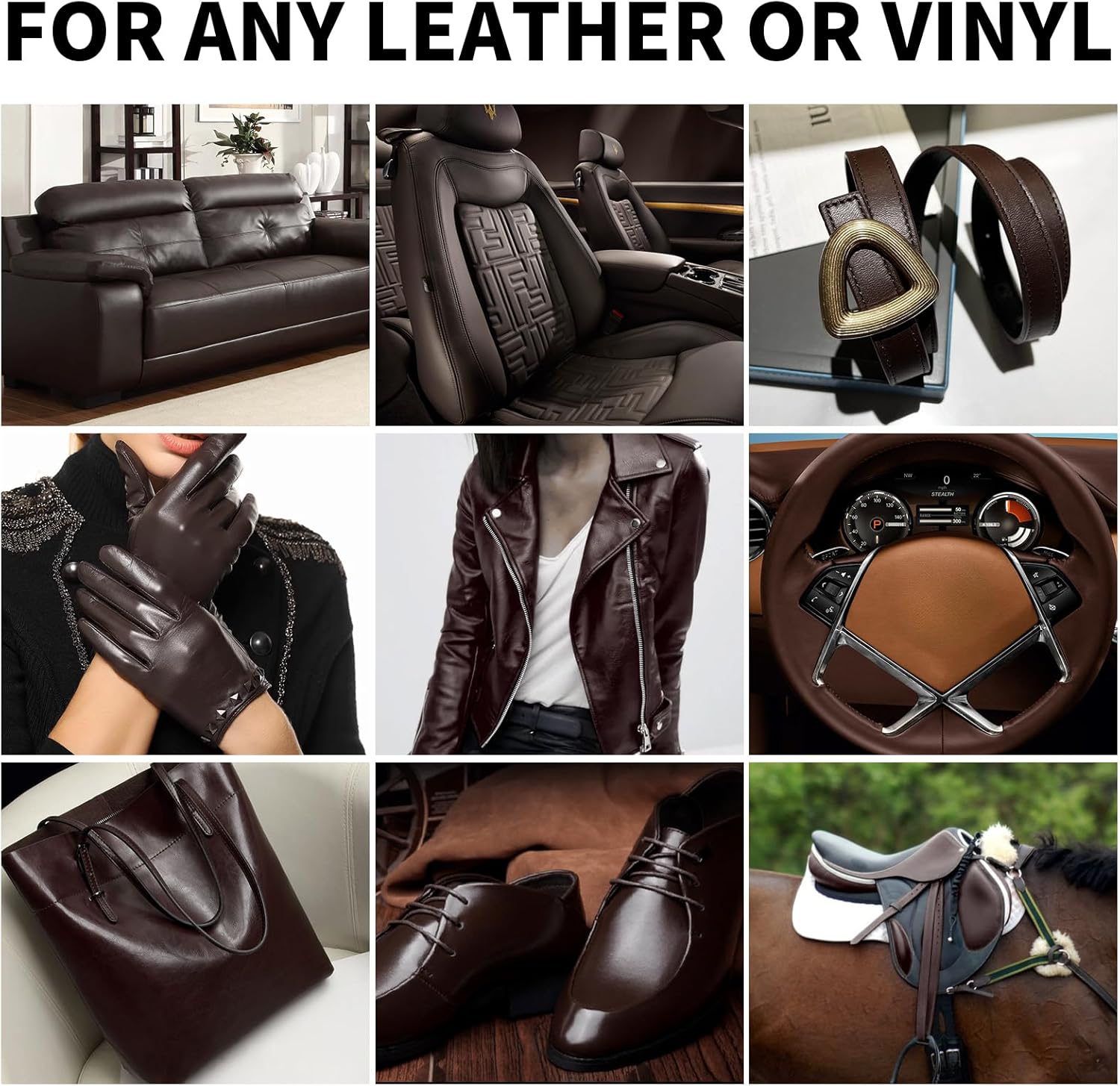 - 【Versatile Application】The leather repair kit is versatile and can be used on a variety of leather and vinyl items, such as sofas, furniture, couches, and automotive interiors, wallets, shoes and boots, tool pouches, saddles, purses, belts and jackets, armrests, and gloves. Its wide-ranging applicability makes it the perfect choice for meeting diverse leather restoration needs.
