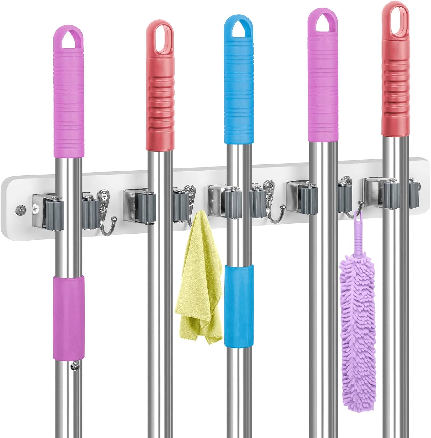 - ORGANIZATION and STORAGE: Whether you're hanging brooms, mops, aprons, cleaning cloths or various other items, it provides a simple and effective way to keep your space tidy. You can easily organizer your home, such as laundry room, kitchen, closet, pantry, basement and other small space.