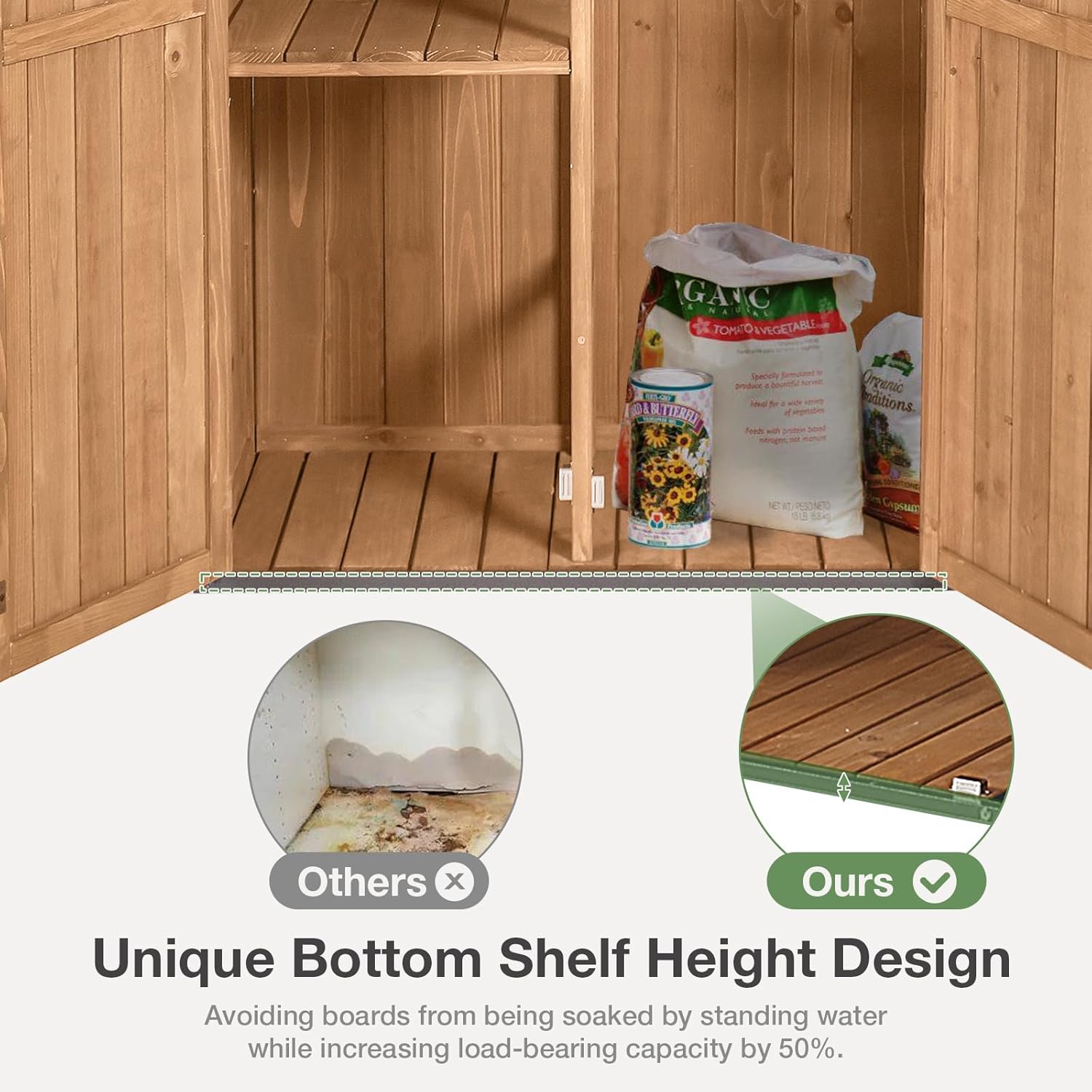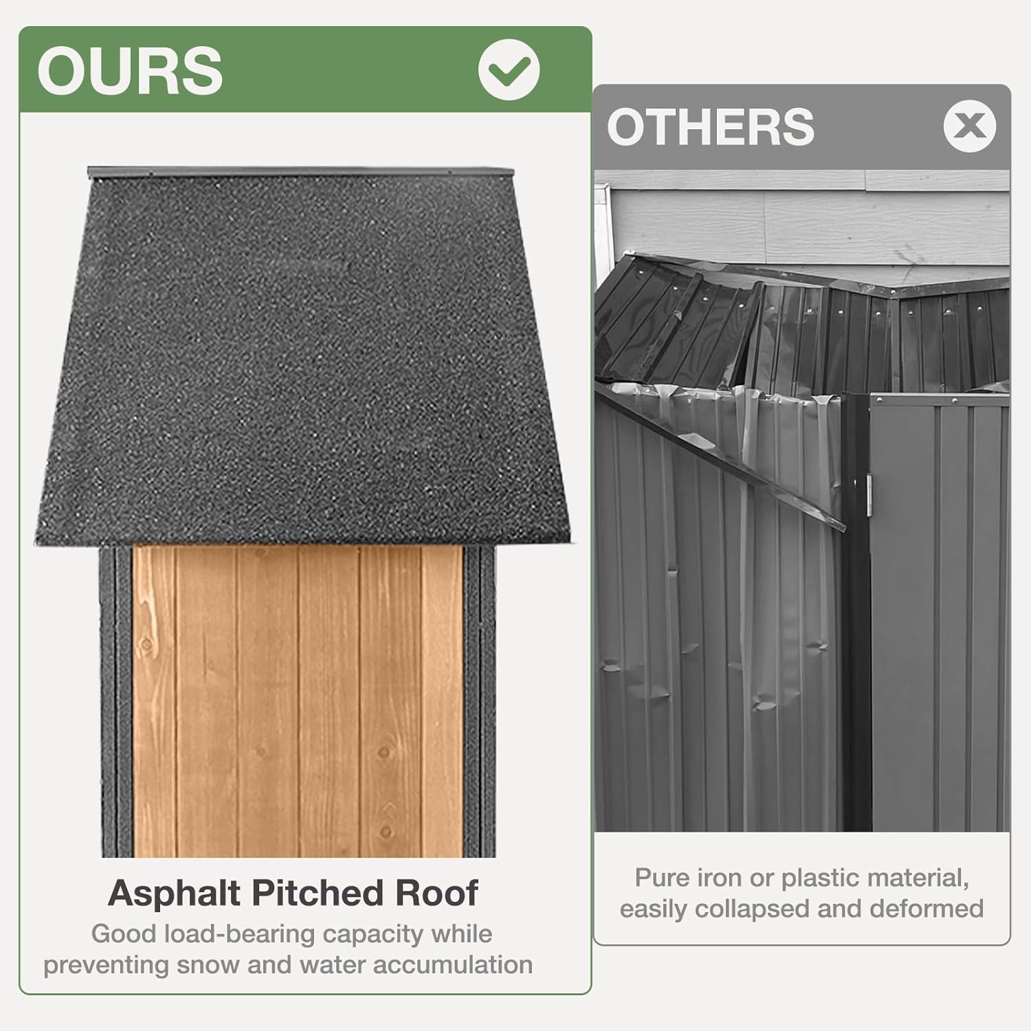 - đăWaterproof Designă: This storage shed features an asphalt peaked roof that protects against rain and snow simultaneously! The raised wood floor prevents water from seeping in and ensures that the storage space is dry and safe