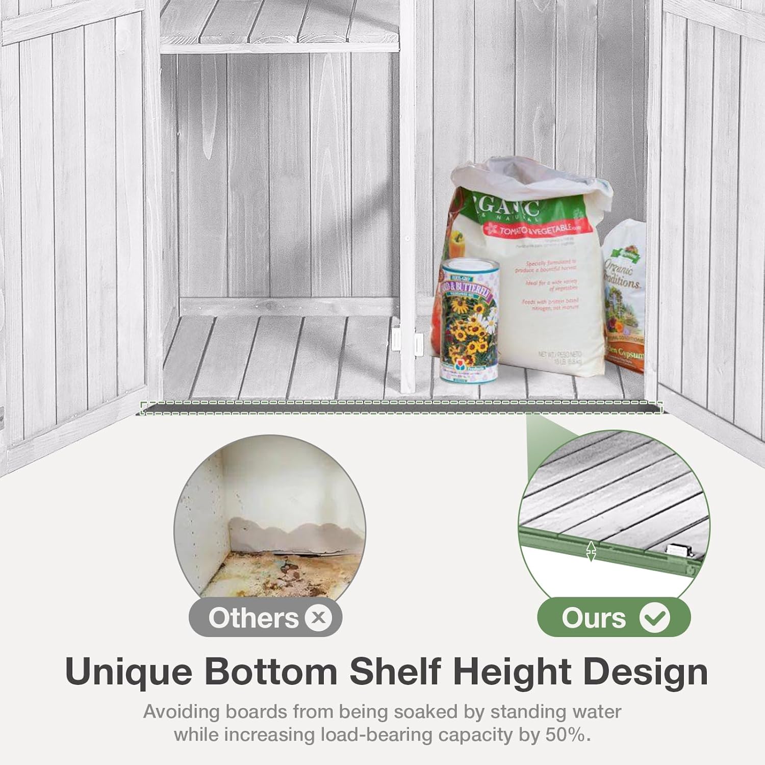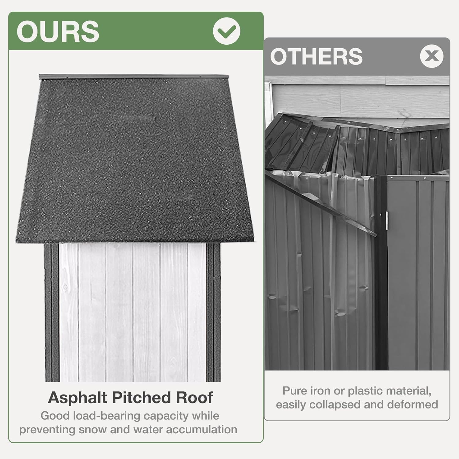 - đăWaterproof Designă: This storage shed features an asphalt peaked roof that protects against rain and snow simultaneously! The raised wood floor prevents water from seeping in and ensures that the storage space is dry and safe