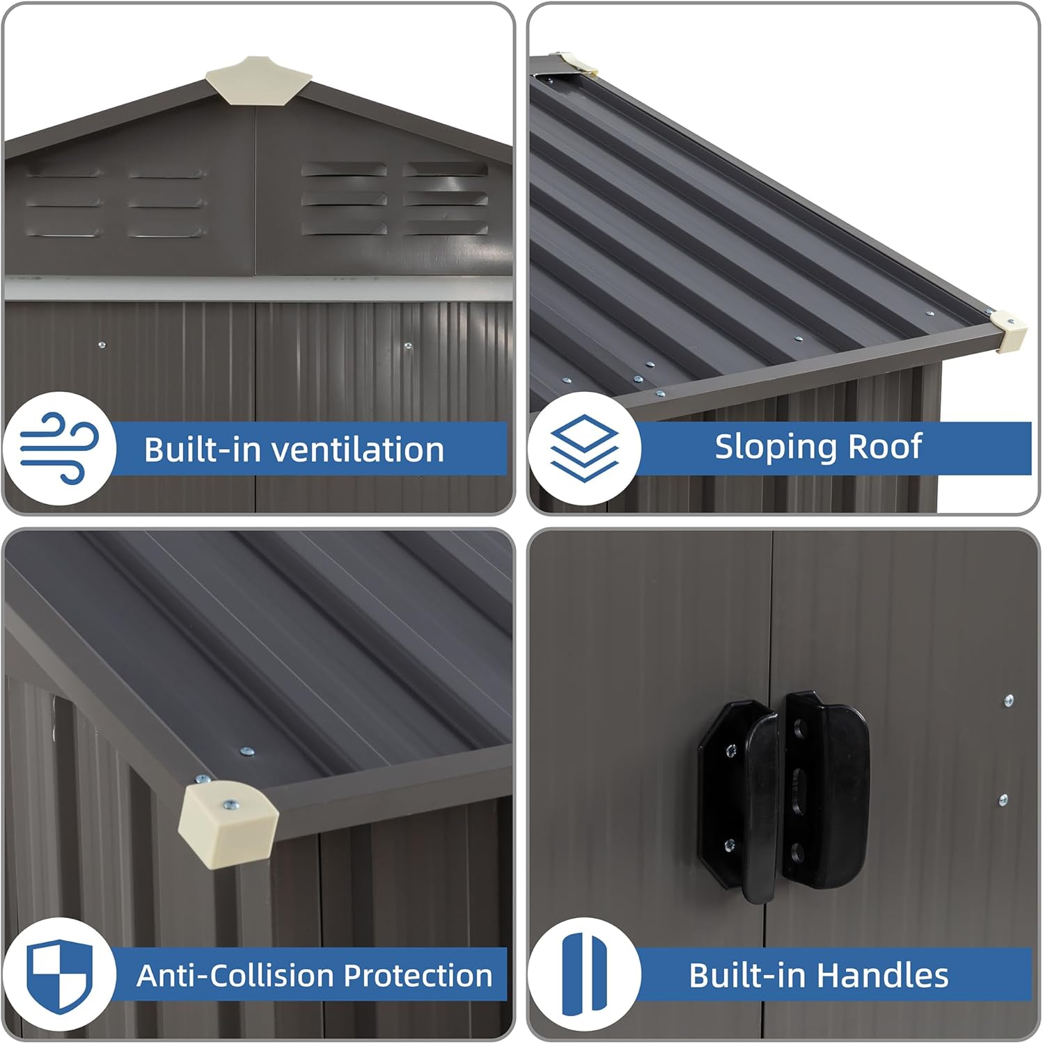 JY QAQA 5x3 FT Metal Outdoor Garden Storage Shed,Waterproof Metal Garden Sheds with Window and Lockable Double Door,Weather Resistant Steel Tool Storage House Shed forPatio,Lawn