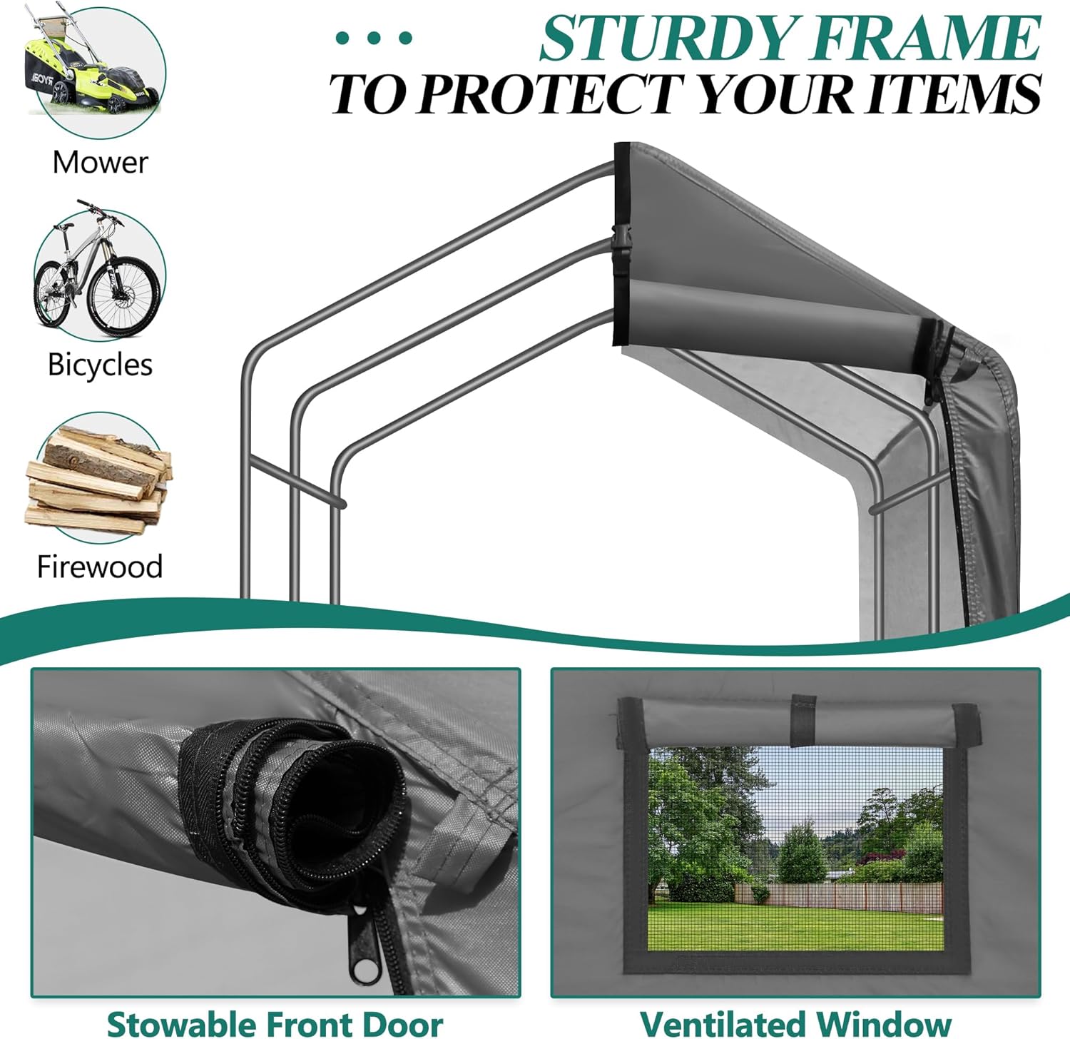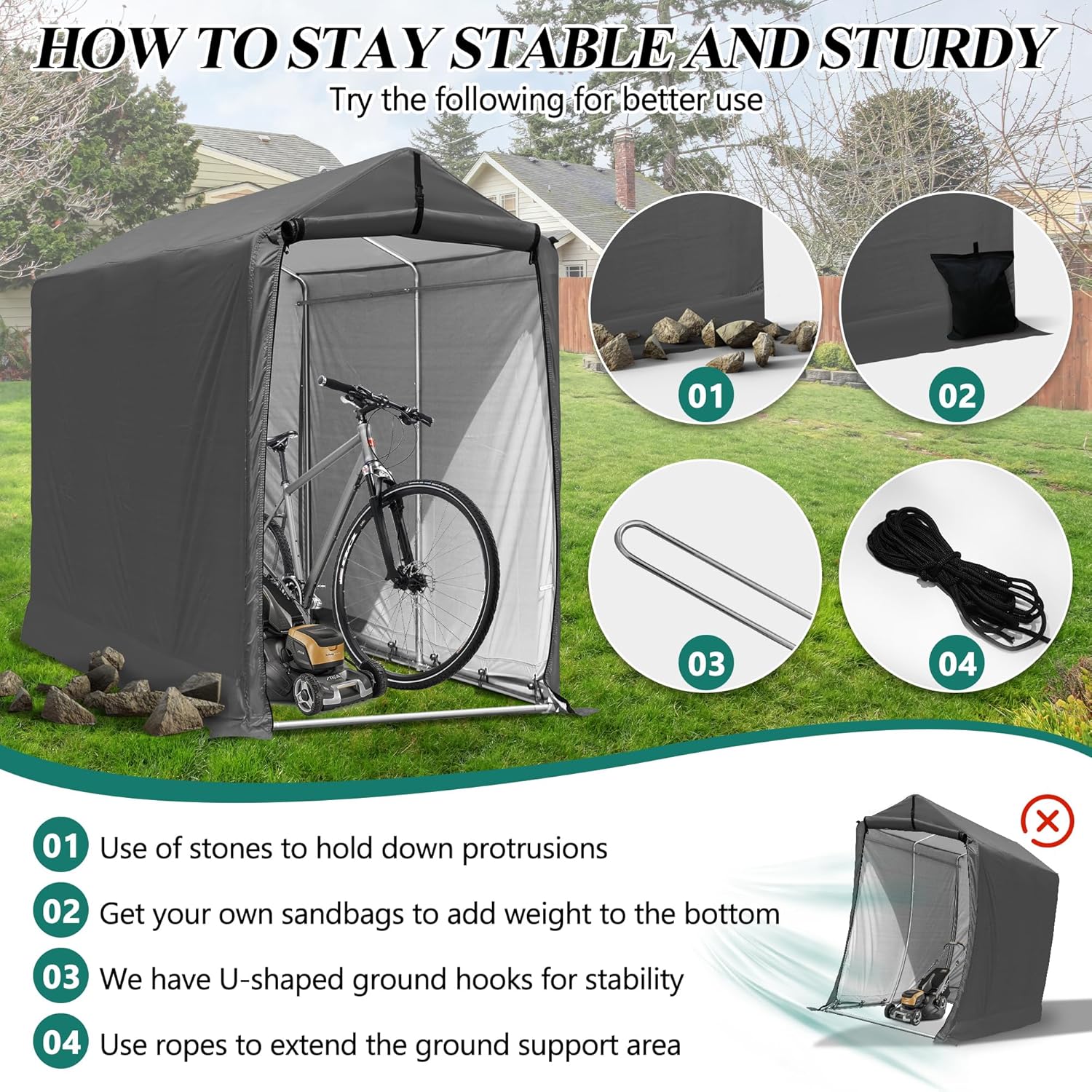 - 🚲Various Usage: The bicycle storage shelter can be used for storing bicycles, motorcycles, farm equipment, gardening tools, etc. It can be used for a wide range of purposes such as cycle garage, simple storage warehouse, etc. It can also be widely used for outdoor, garden, outdoor, etc.