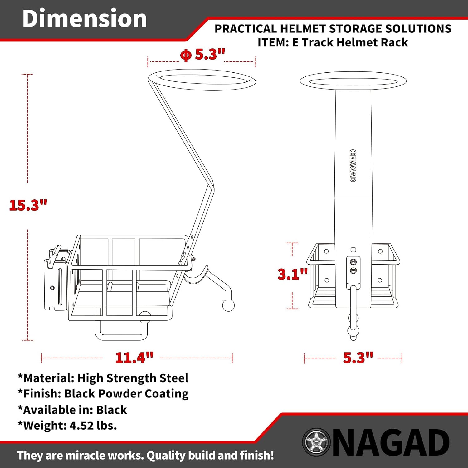 - Durable Material: The e track motorcycle helmet hanger is a miracle worker! Made of thicker heavy-duty steel with black powder-coating, which have strong load-bearing capacity and are not easily deformed to prevent corrosion and rust for long-term use. Compared to ordinary helmet hooks, the design of the top support ring increases the contact surface with the helmet for better storage and protection.