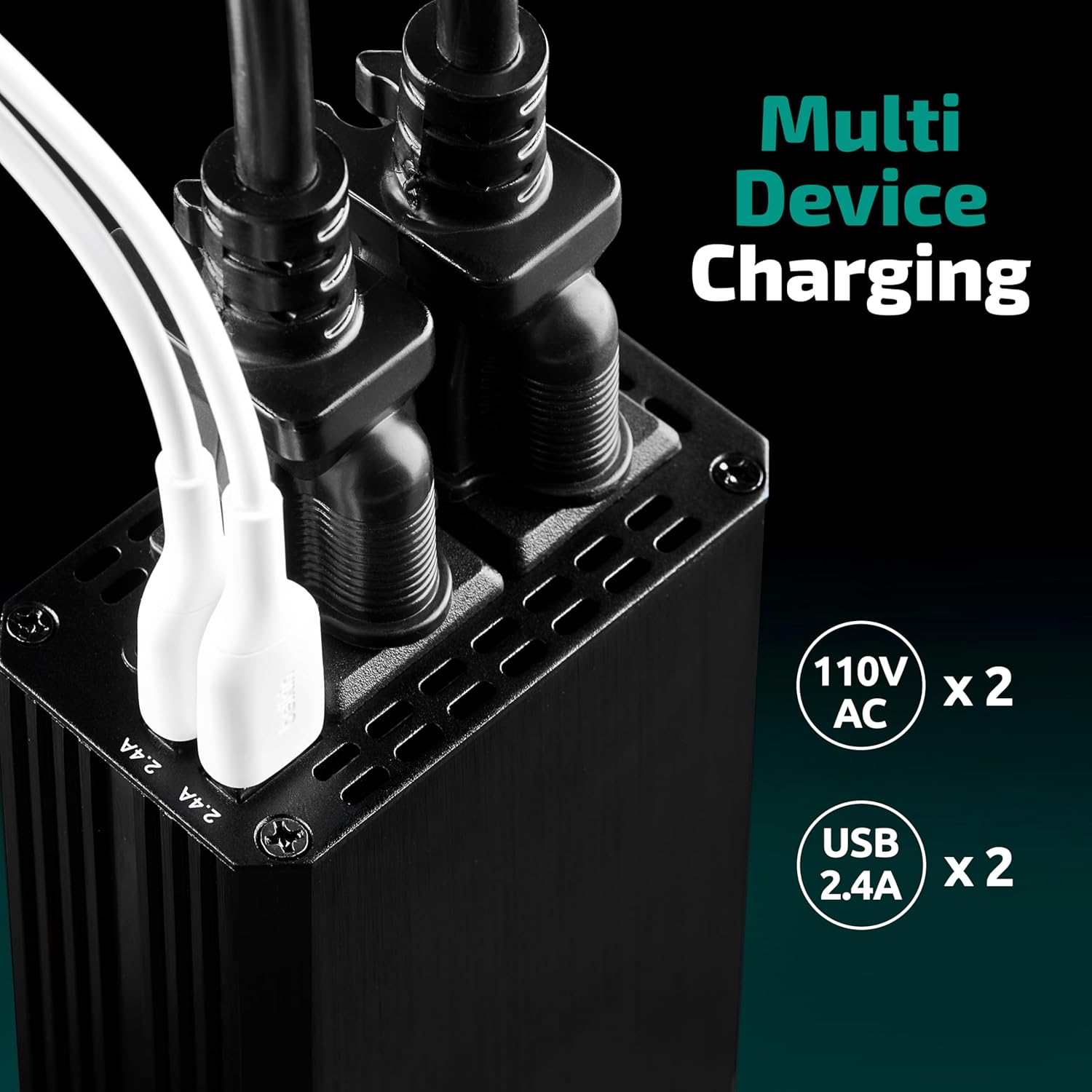 - 1-YEAR FULL WARRANTY: Enjoy peace of mind with our 1-year full warranty. This car inverter is the ideal power converter for your inverter 12v to 110v needs.