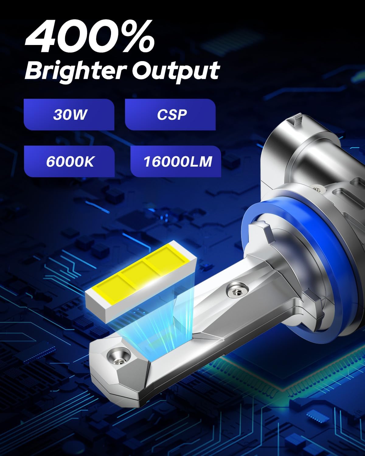 AUTOONE H8 H9 H11 Light Bulbs, Direct H11 Replacement 16000LM Fog Light, Fanless Mini Size, Pack of 2