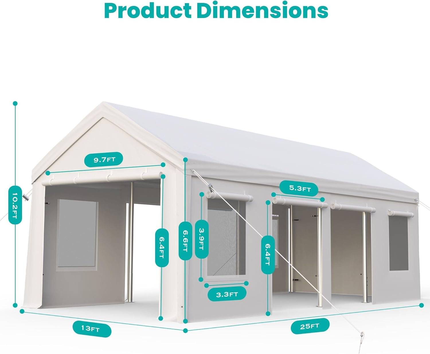 - - **Spacious & Versatile Design**: This Heavy Duty Carport offers a 13x25ft area, perfect for cars, trucks, boats, SUVs, and trailers. Removable sidewalls and doors make it ideal for parking and outdoor events like parties, weddings, and commercial fairs.