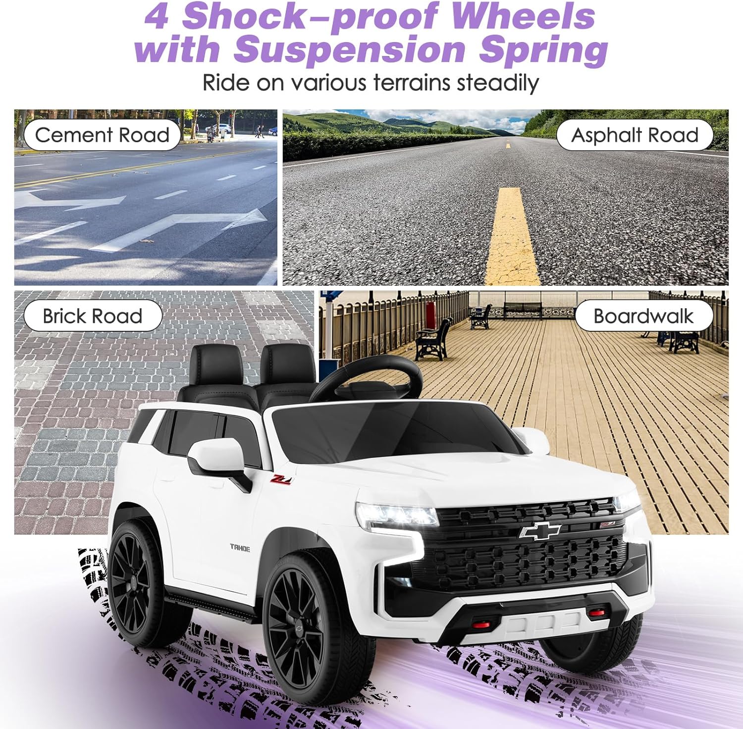 HONEY JOY Ride On Truck, 12V Licensed Chevrolet Tahoe, Chevy Electric Vehicle for Kids, Soft Start, Music, Lights, Battery Powered Ride On Car Toy with Remote Control, Gift for Boys Girls (White)