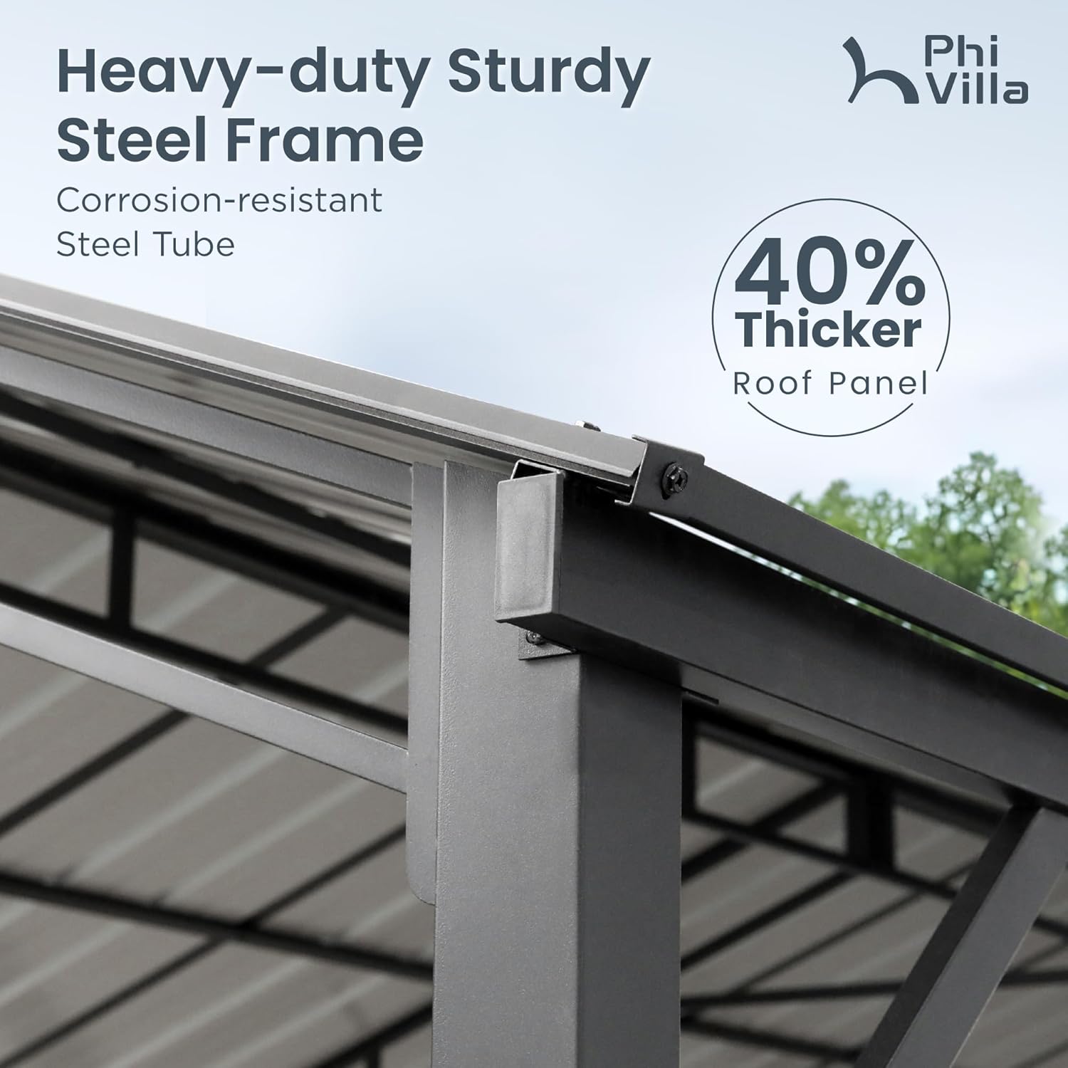PHI VILLA 10 x 20 ft Carport Metal Carports with Galvanized Steel Roof, Sturdy Heavy Duty Metal Carport for Cars, Boats, and Tractors
