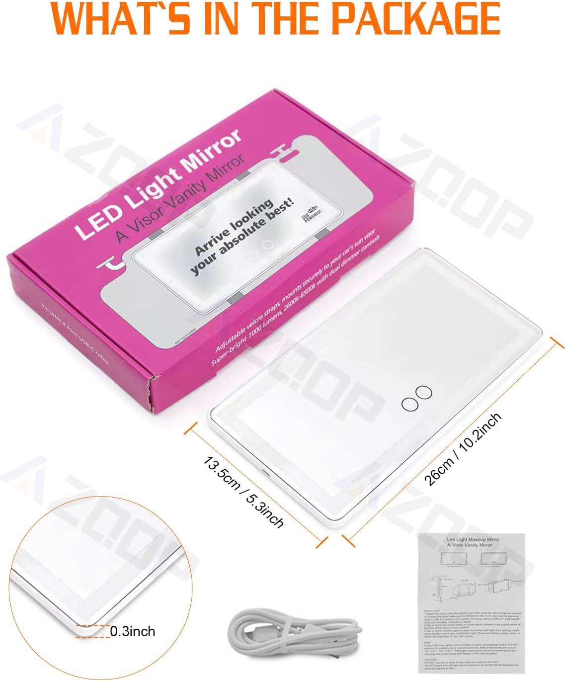 - Included Components : Car Makeup Visor Mirror with Light, Charging Cable, User Manual