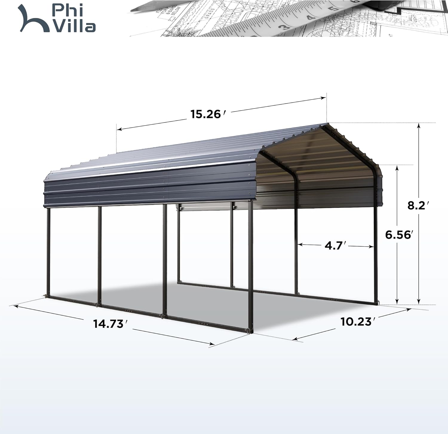 PHI VILLA 10 x 15 ft Heavy Duty Carport with Galvanized Steel Roof Multi-Use Shelter, Sturdy Metal Carport for Cars, Boats, and Tractors