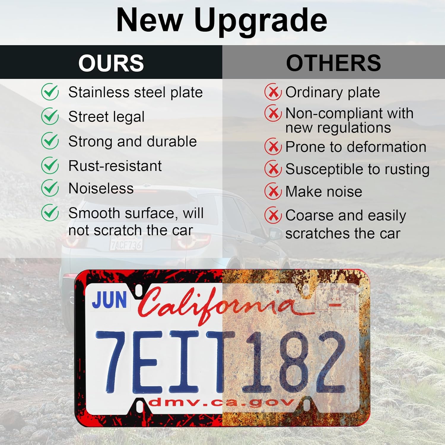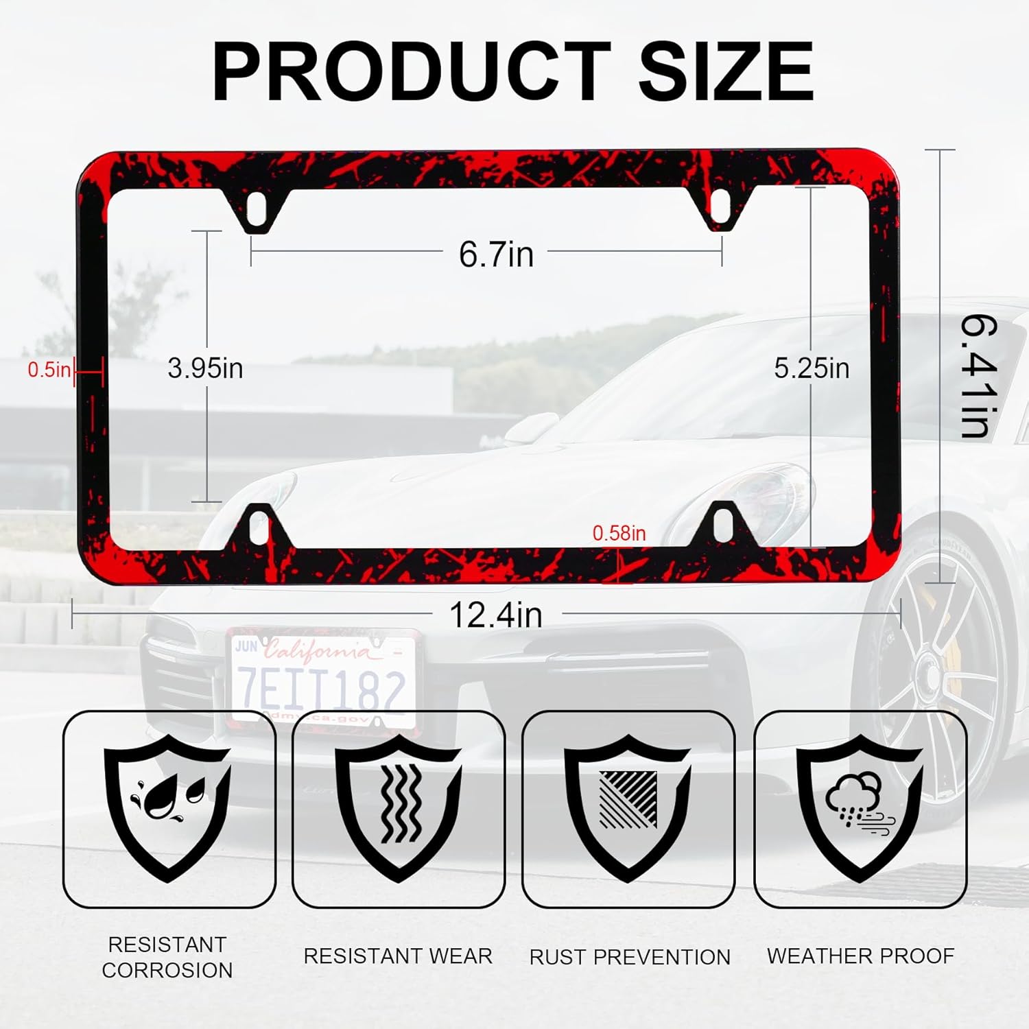 LivTee Black License Plate Frames, 4 Holes Stainless Steel License Plate Covers, 2PCS Car License Plate Holder, Automotive Exterior Accessories, Blood Splatter
