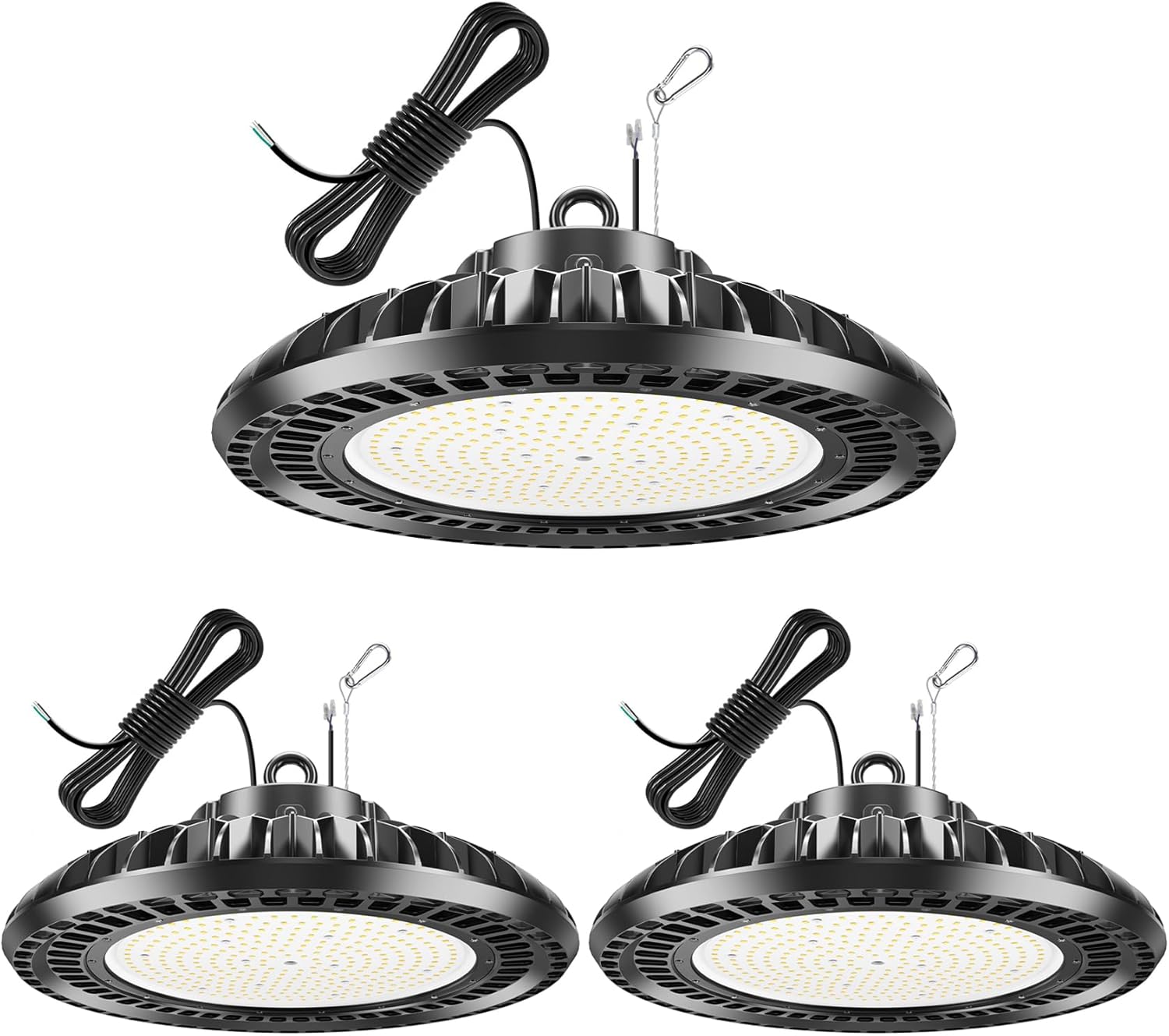 - ☀Wide Application: UFO led light are commercial grade, meet both dry and wet environments, garages, barns, utility rooms, warehouses, stores, basements, high bay factories, logistic centers, exhibition halls, stadiums, mines, toll booths, supermarkets, parking lots, gyms, bays, laundries and more.