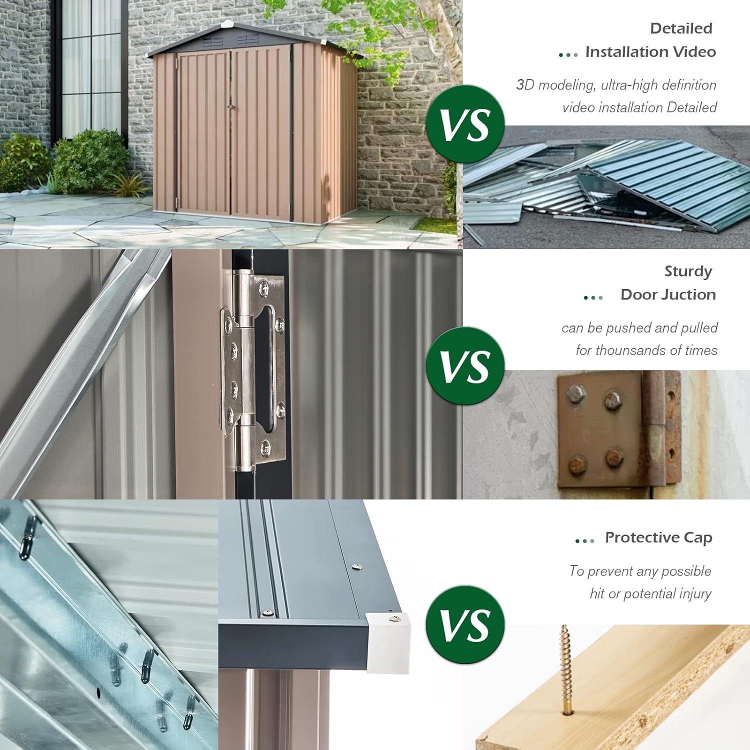 - Professional Packaging and Support: The shed comes conveniently packaged in three boxes with all the necessary hardware included. It also includes a pair of gloves for hand protection during assembly and instructional videos for easy setup. We offer responsive 24-hour customer service to assist with any questions or needs.