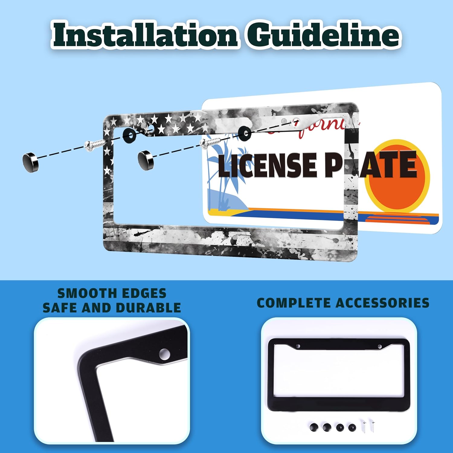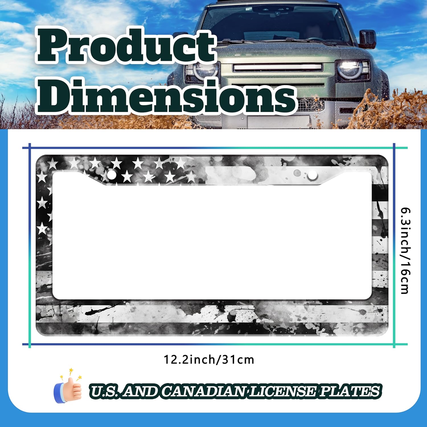 Vintage American Flag License Plate Frame USA Flag Stainless Steel License Plate Holder for Front or Rear Car Tags Funny for Car Decoration Accessories with Screws 6.3 X 12.2 in for Women Men