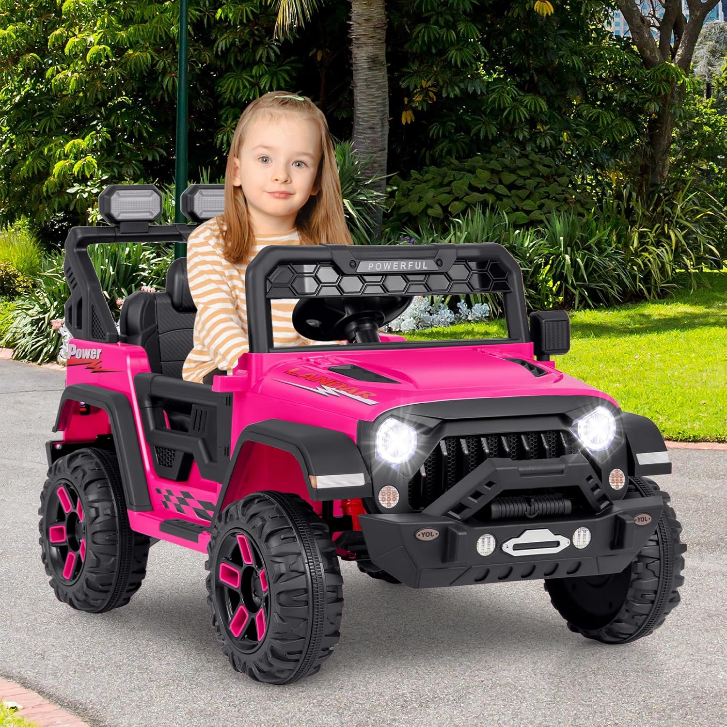 Costzon Kids Ride on Truck, 12V Electric Ride on Car with Remote Control, 3 Speed & Spring Suspension, Wireless Connection, USB, Music, Light, Kids Ride on Toys for Boys Girls (Pink)