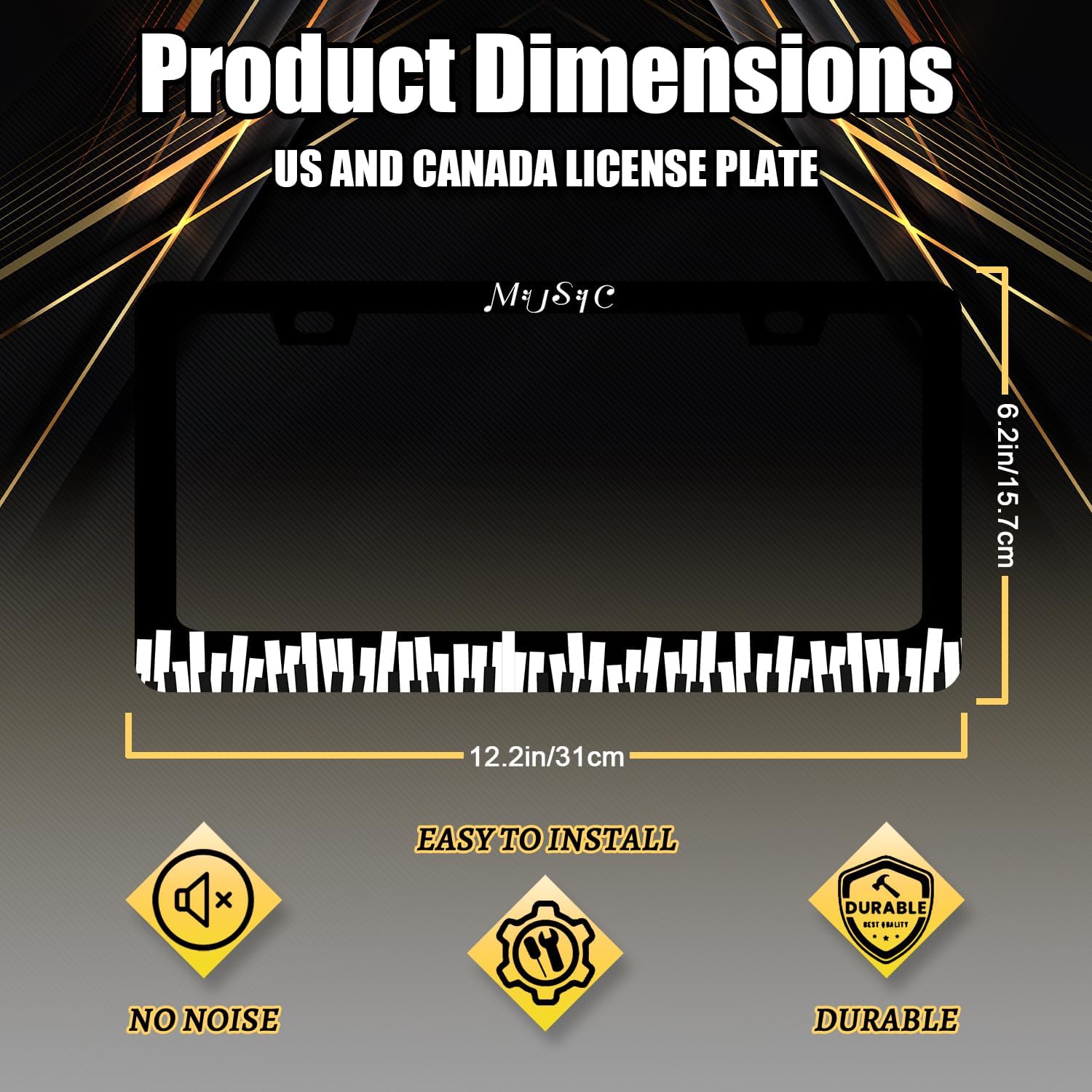 Piano Music License Plate Frame Music Notes License Plate Holder Stainless Steel Front and Rear Car Tags Auto Parts Funny License Plate Decoration with Screws for Men Women s 12.2"x 6.2"