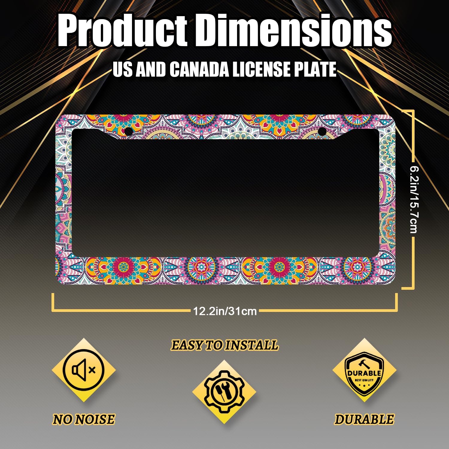 Mandala Hippie License Plate Frame Boho Print License Plate Holder Stainless Steel Front and Rear Car Tags Auto Parts Funny License Plate Decoration with Screws for Men Women s 12.2"x 6.2"