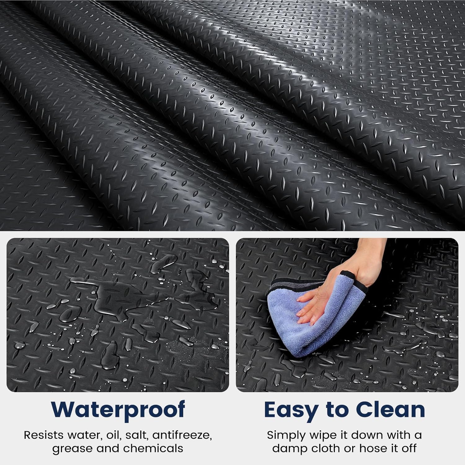 - 【Anti-slip Texture】Garage floor mat uses a treated herringbone texture to increase friction and significantly improve anti-slip performance, providing good grip regardless of whether the ground is slippery or dry.