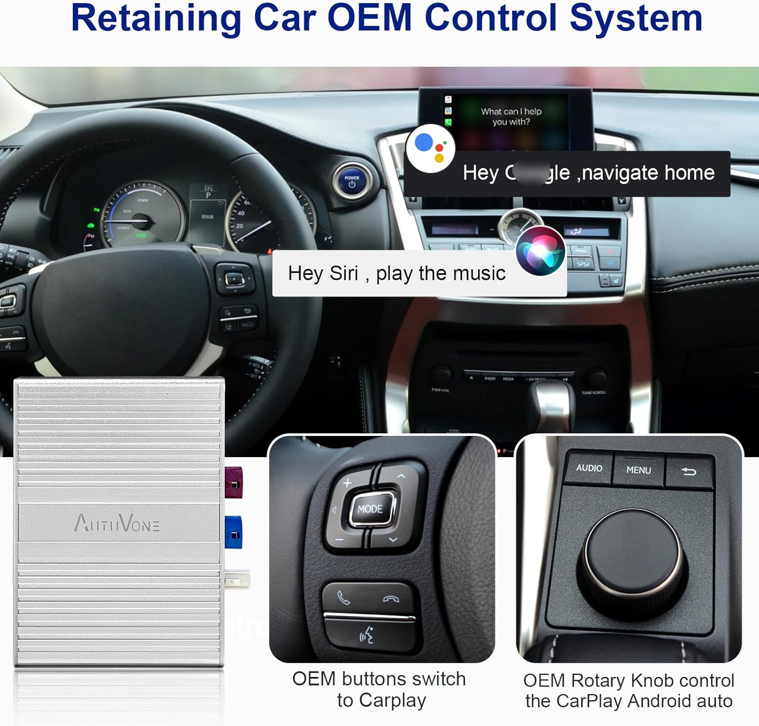 LVDS Wireless Wired CarPlay for Lexus RX ES NX CT is RC OEM Rotary Knob Controller, Add On Car Play, Support Wireless Android Auto Retaining The Factory Operation System