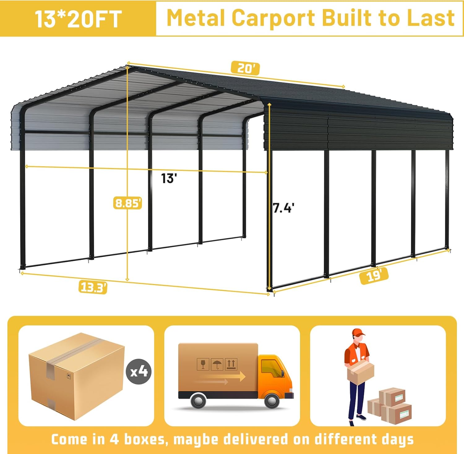 - Better Installation Experience: The 13*20ft garage will arrive in 4 packages. The package contains the necessary hardware and easy to understand instructions. If you have any questions, please feel free to contact us through customer service. Note: You may not receive the packages at the same time.