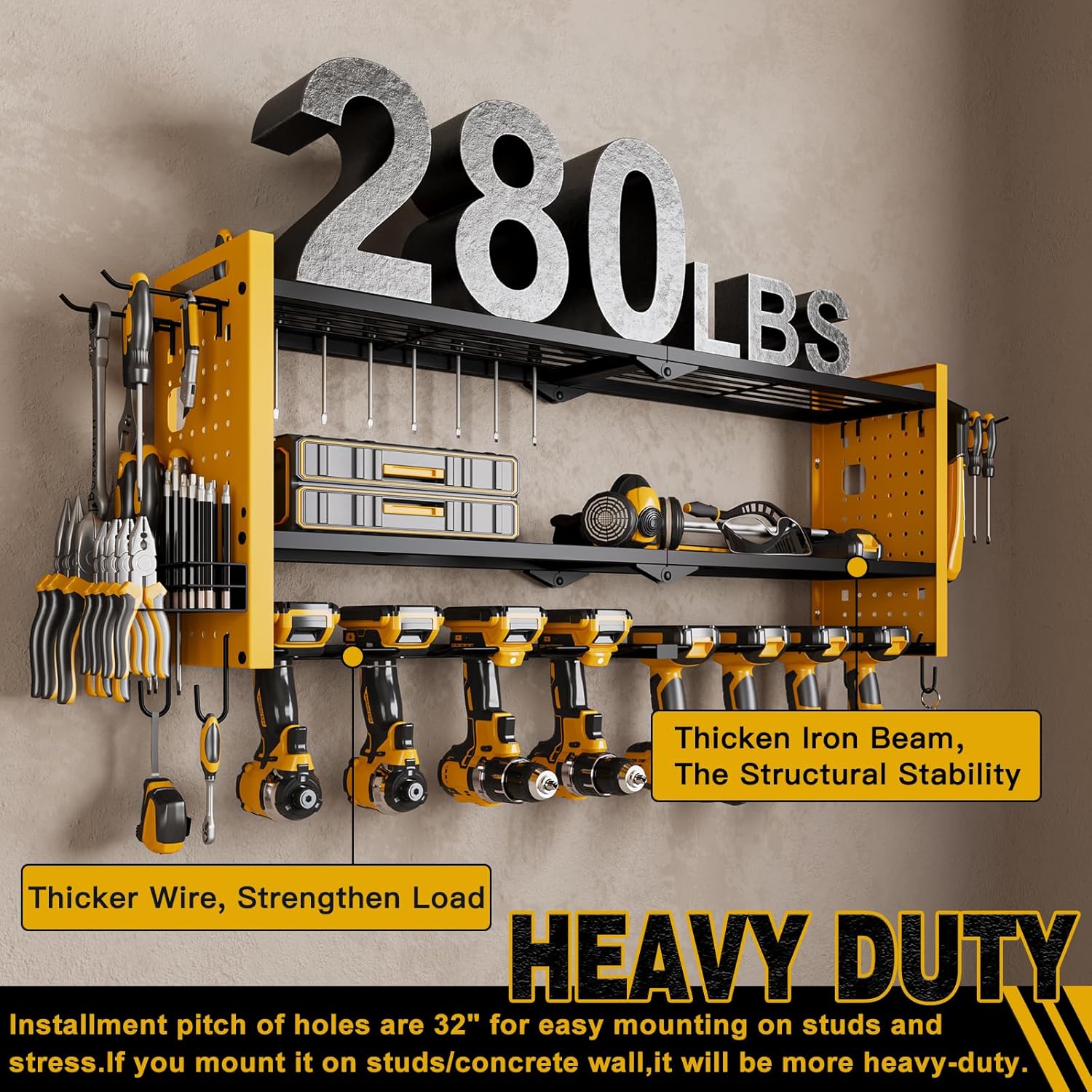 Power Tool Organizer Wall Mount,Cordless Drill Hanger Storage Rack 8 Drill Holder,3 Layers Heavy Duty Power Tool Storage Rack(Yellow)